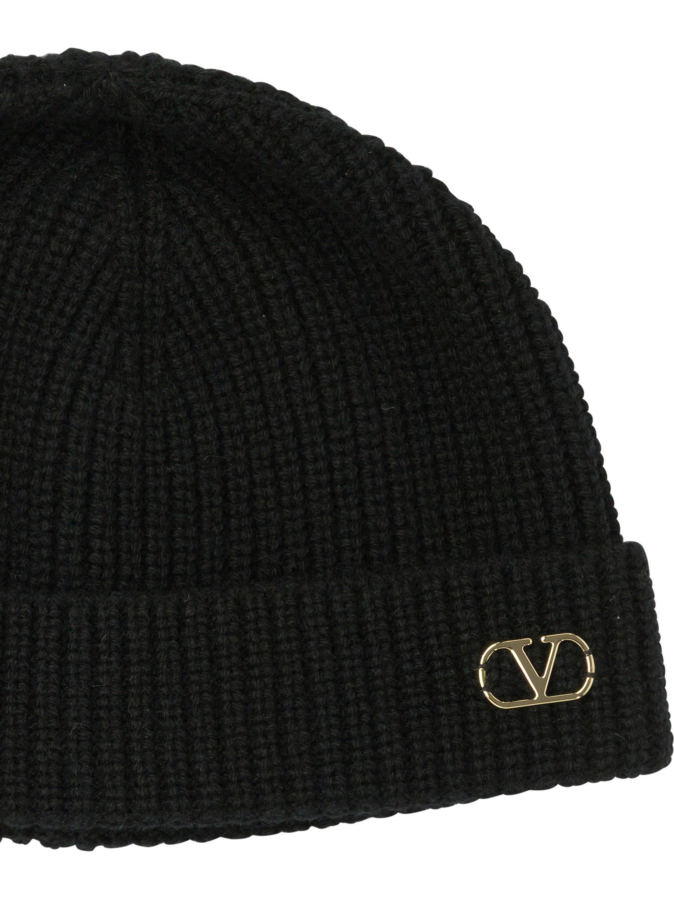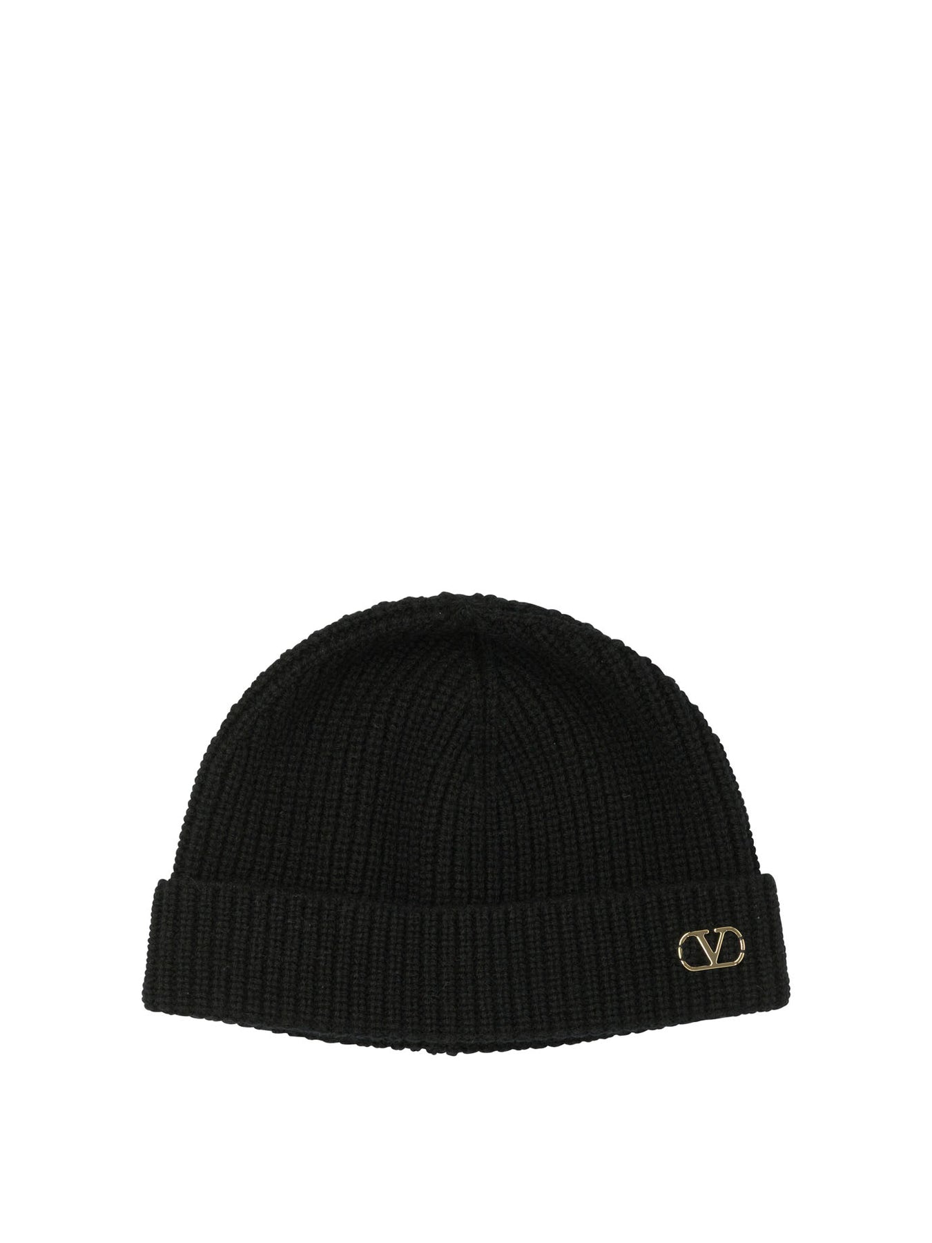 Valentino Garavani Signature Vlogo Cashmere Beanie Hats - Black | d294914b80454e36ac0ac1c714898215be4e9548