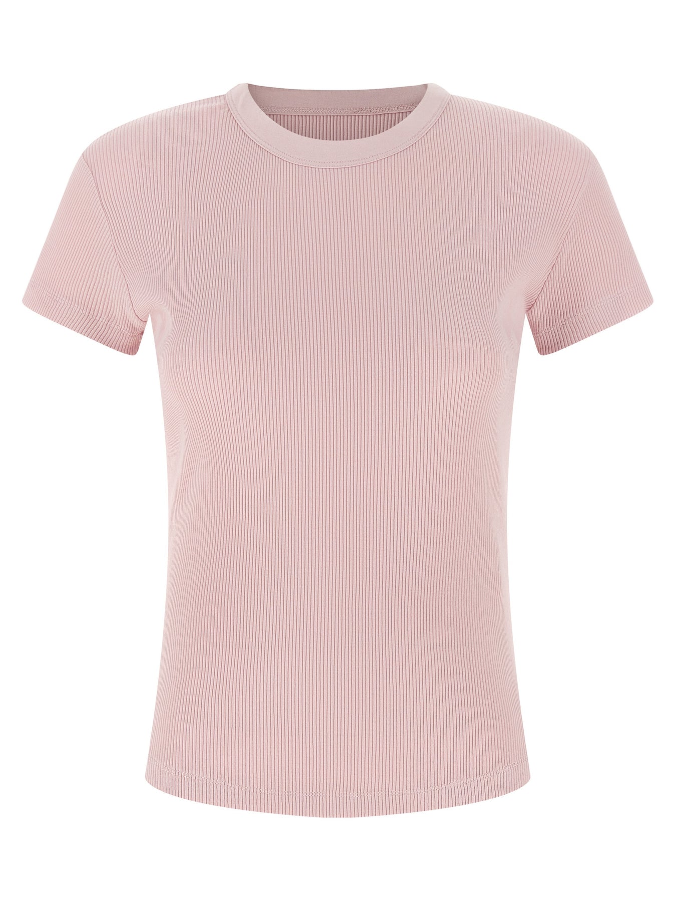 'Taomi' ribbed cotton jersey t-shirt with round neckline, tone-on-tone logo embroidery on the back, short sleeves, rounded hem.