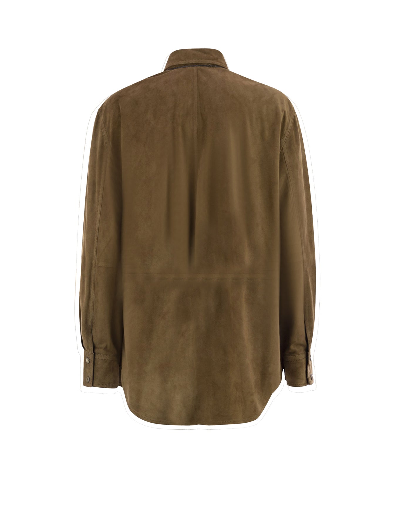Snap button closure Pointed collar with stitched trim Long sleeves with two-button cuffs Rounded bottom Made in Italy 100% leather SKU: MPCLF7435PC7495