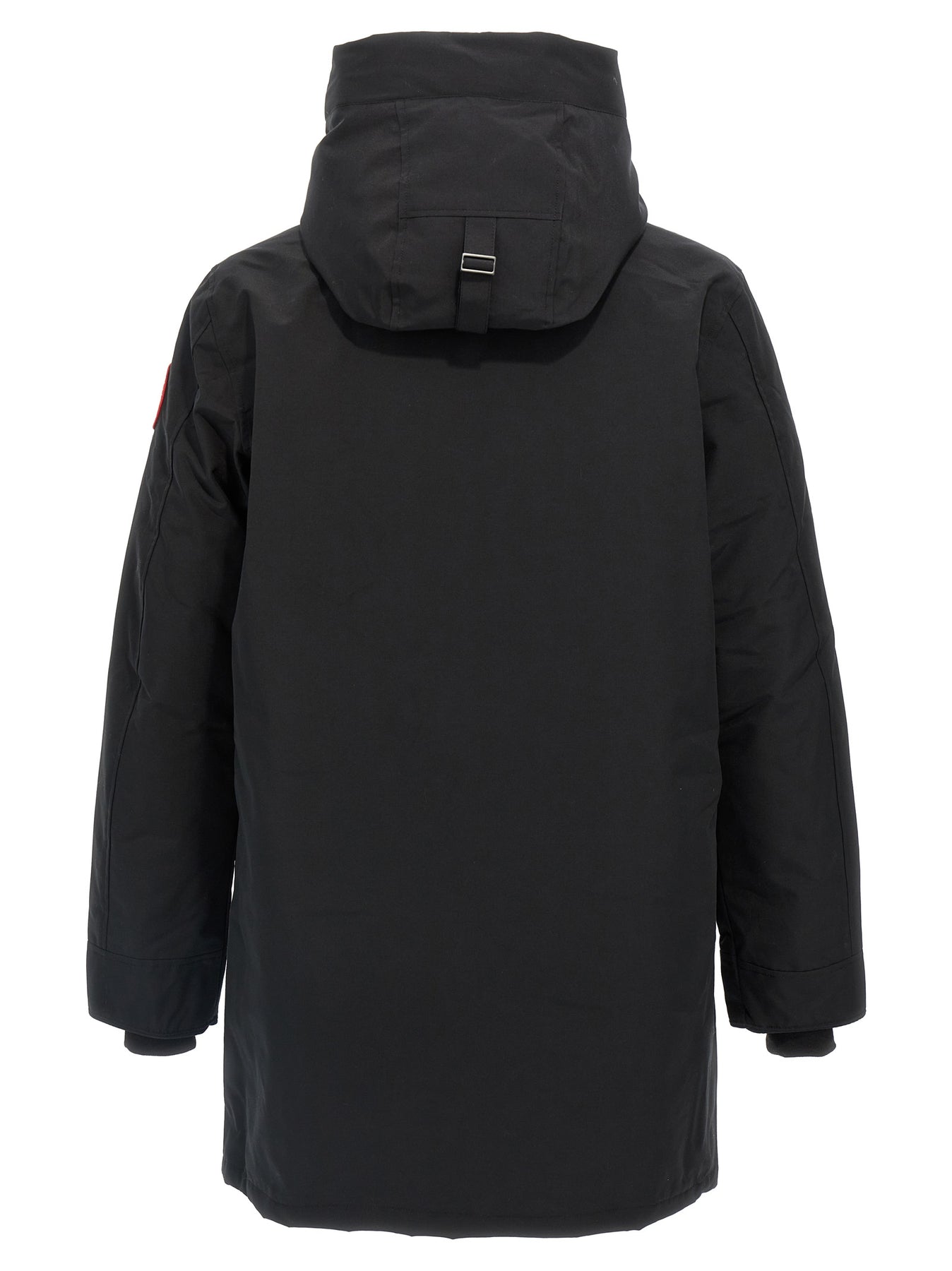 Long ‘Langford’ parka in Arctic Tech® padded with goose down, hood with removable insert for changing finishes, high collar, front zip and snap button closure, pockets, long sleeves with CORDURA® piping, windproof cuffs, and logo patch. Internal backpack straps for carrying the garment hands-free. SUSTAINABLE: Product made with recycled and organic materials.