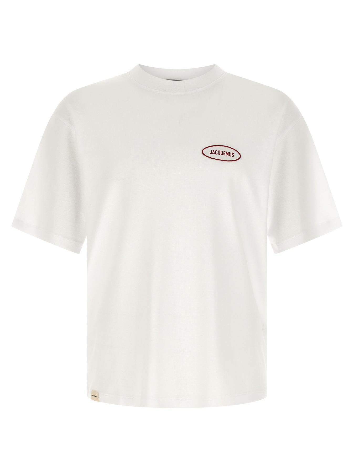 'Le Tshirt Stazione' thin ribbed cotton jersey t-shirt, front logo patch, crew neck, 3/4 sleeves with dropped shoulders.