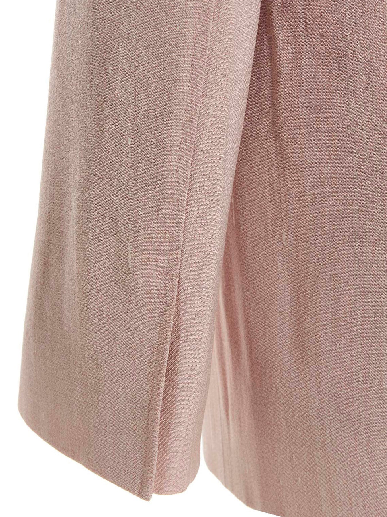 Viscose and silk double breast blazer featuring a button closure, pockets, and long sleeves.