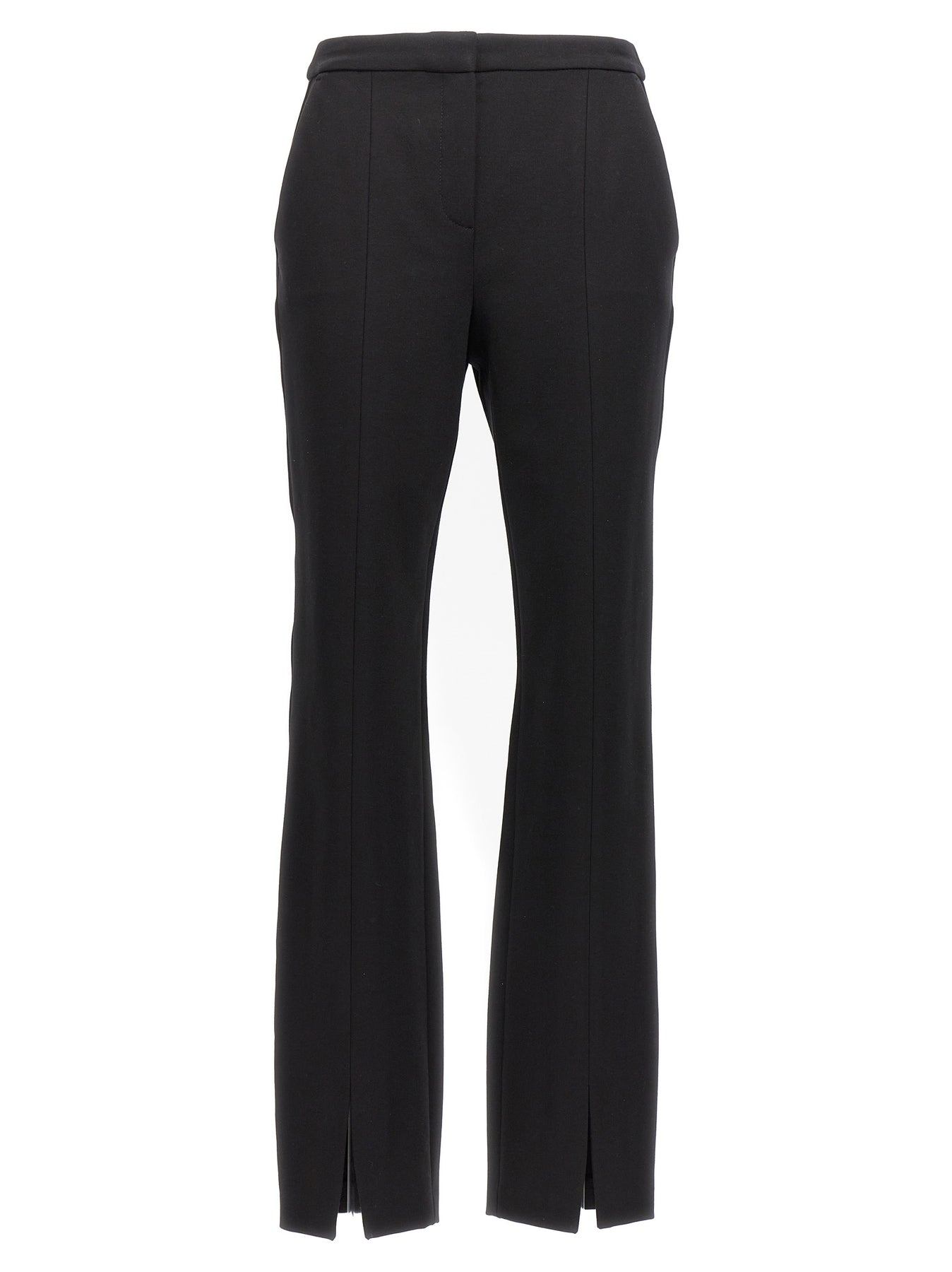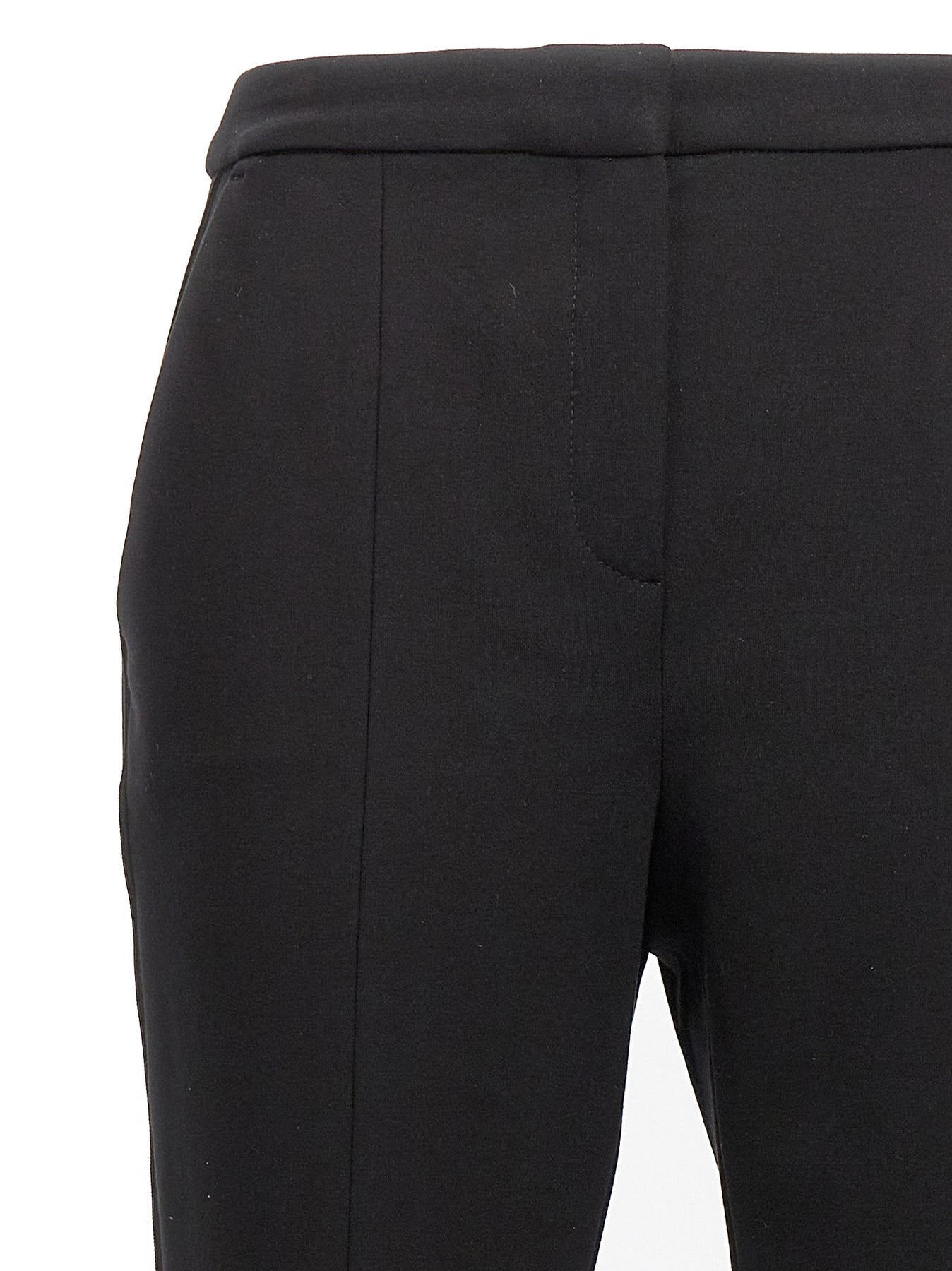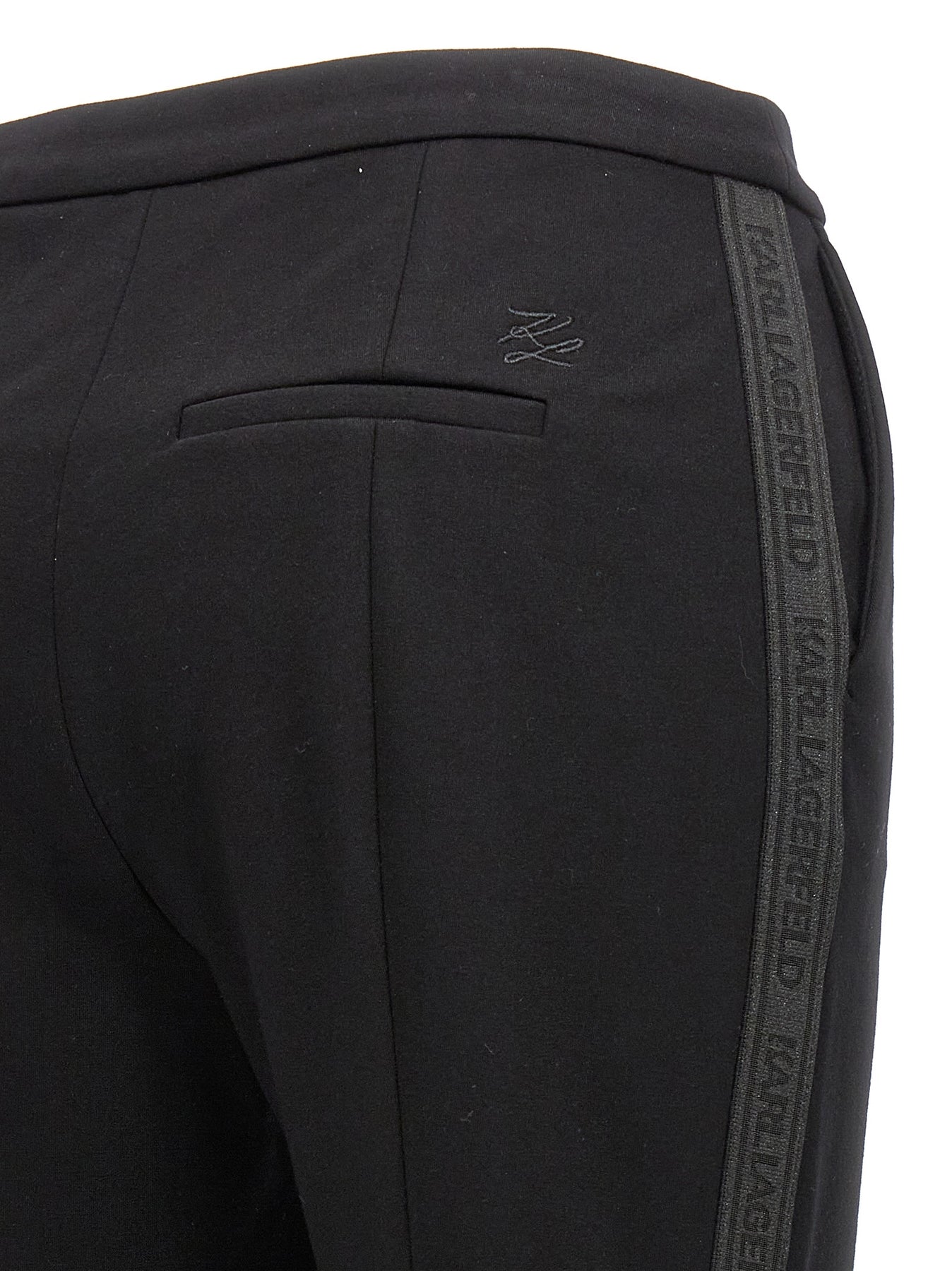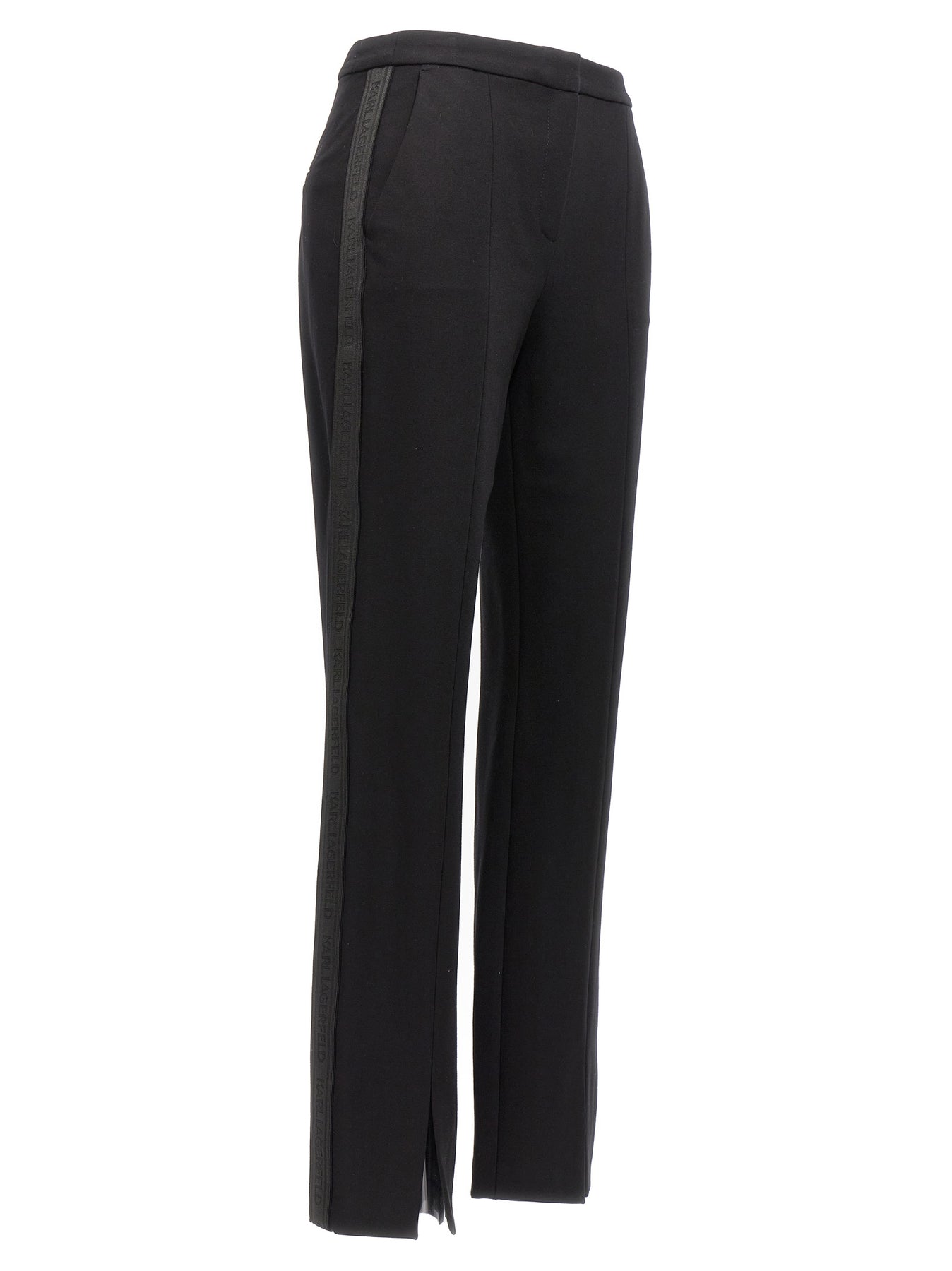 Punto stretch fabric pants with zip and hook-and-over closure, pockets and side bands with logo.