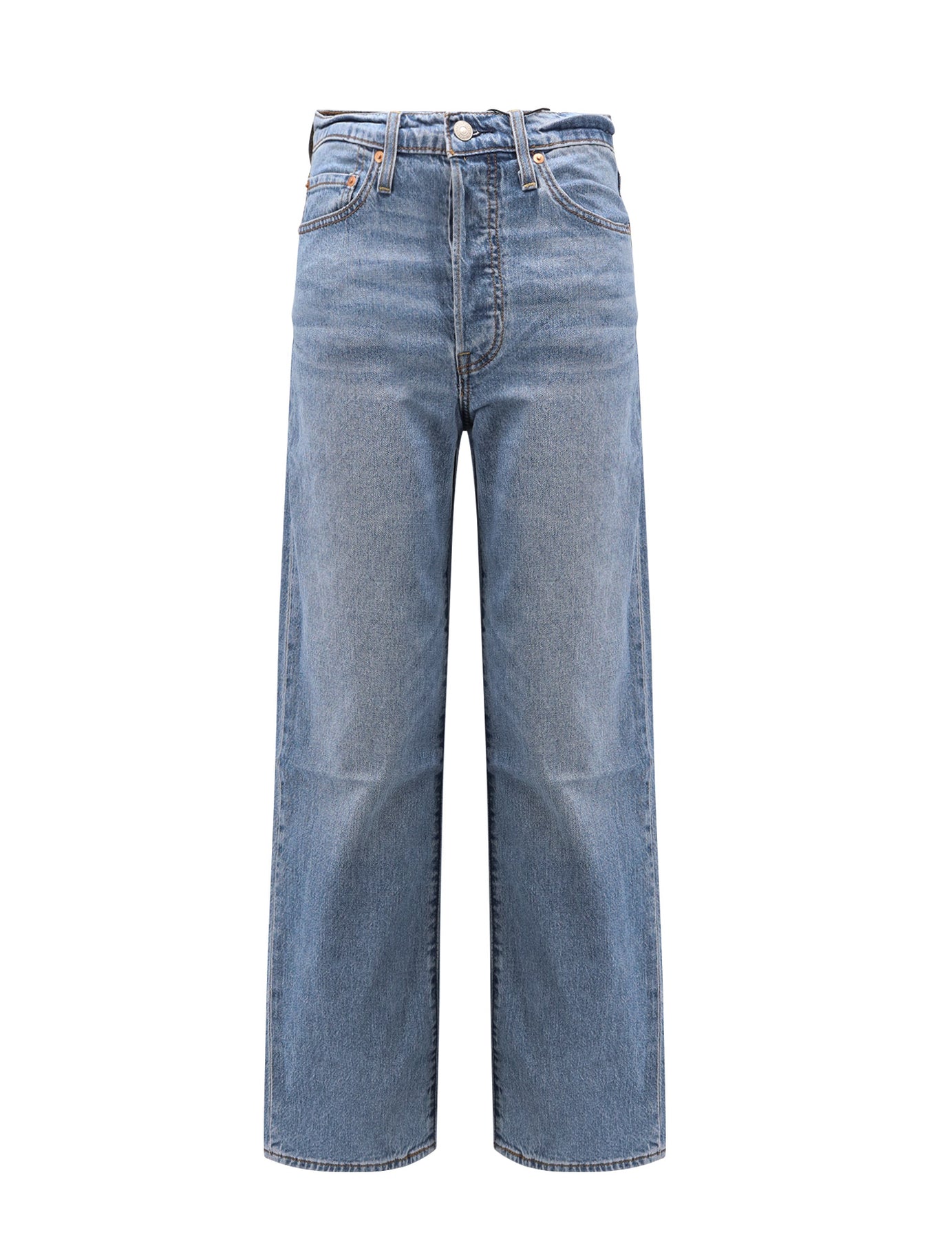 SKU: 726930229_0229 - Super high rise closure with zip and metal button slim fit leather logo patch 70% cotton 19% lyocell 8% linen 2% elastomultiestere 1% elastane