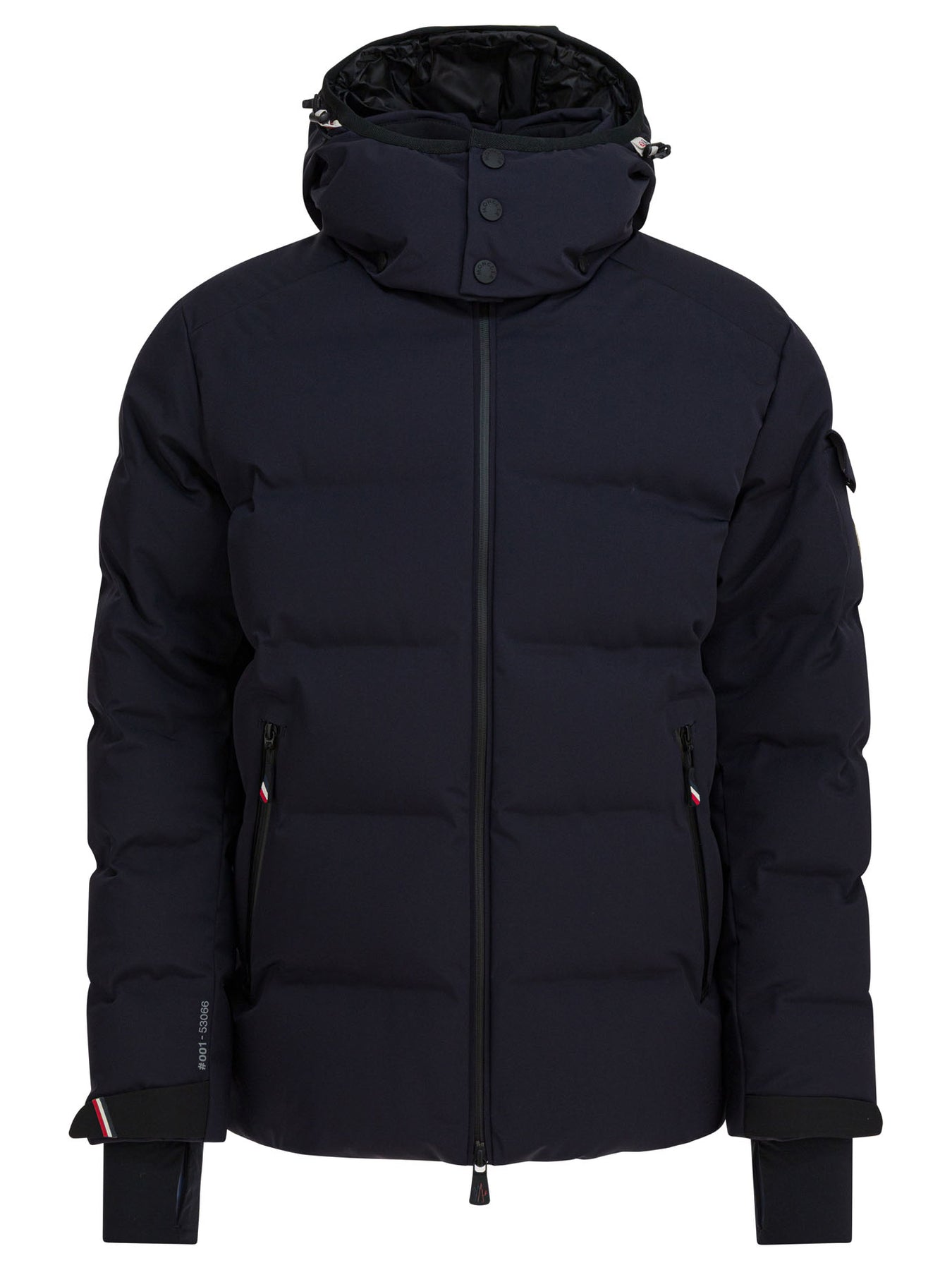 Moncler Grenoble "Montgetech" ski down jacket, constructed of 2L four-way stretch nylon bonded to a breathable technical membrane. Adhesive padding and boudin, polyester lining and short construction. Adjustable and removable hood, inner fleece collar, YKK AquaGuard high water-resistant zipper closure. Adjustable elastic drawstring hem and cuffs fitted with stretch jersey gaiters. || - Moncler Grenoble logo applied - Adjustable and removable hood - Highly waterproof YKK AquaGuard zipper closures - Ski pass pocket with snap button closure - Inside pocket for smartphone - Windproof gaiter - Cuffs with adjustable finish and tricolor detail - Water-repellent padding - Windproof and breathable fabric - 4-way stretch nylon for ample freedom of movement - Logo details - Regular fit