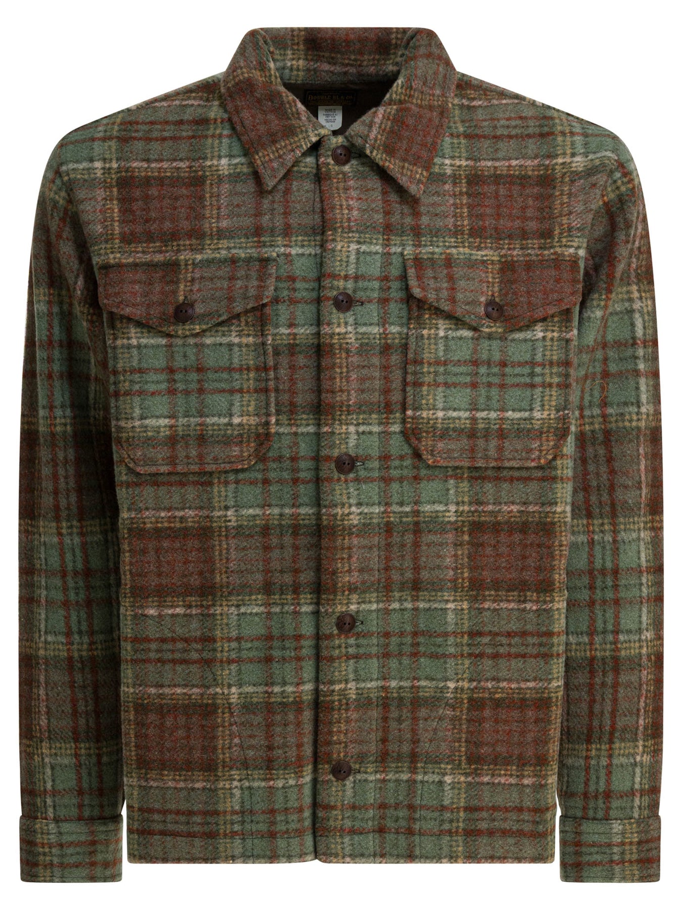 RRL by Ralph Lauren wool plaid overshirt jacket made of fiber-dyed double-knit jacquard with wool blend. The construction features a brushed texture and internal fabric reinforcements. The silhouette is regular, with a classic collar, front cannon and long sleeves fitted with button-fastened cuffs. Two flap and button patch pockets on the chest and two suede-lined handwarmer pockets complete the construction. || - Check - Long sleeves - Double-knit wool-blend jacquard - Brushed texture - Corozo buttons - Classic collar - Cannon with buttons - Two flap pockets on chest - Suede-lined handwarmer pockets - Fabric reinforcements on the inside - Regular fit