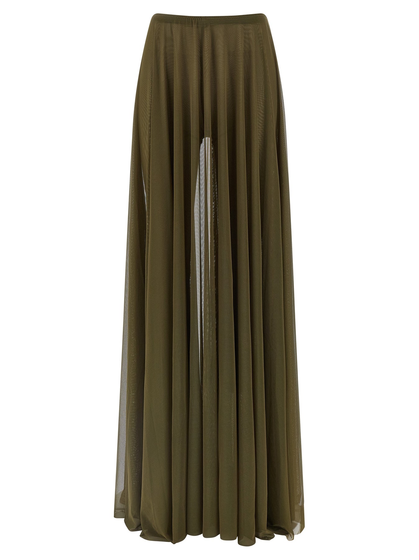 Long skirt in pleated semi-transparent fabric, elastic waistband, built-in leggings with stirrup foot.