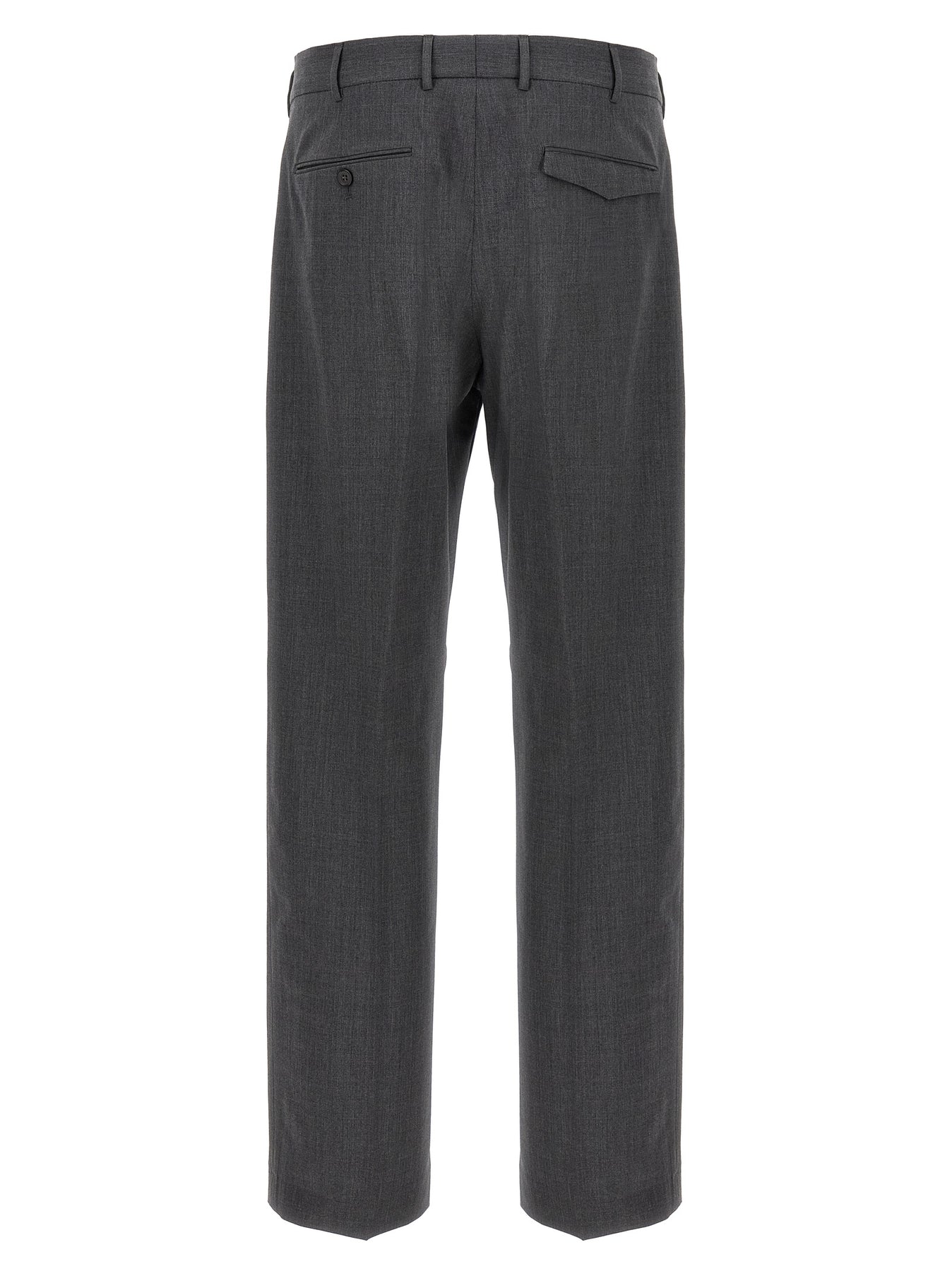 'Michael' b-stretch wool pants with front button closure, pockets, straight leg, stretched pleat.