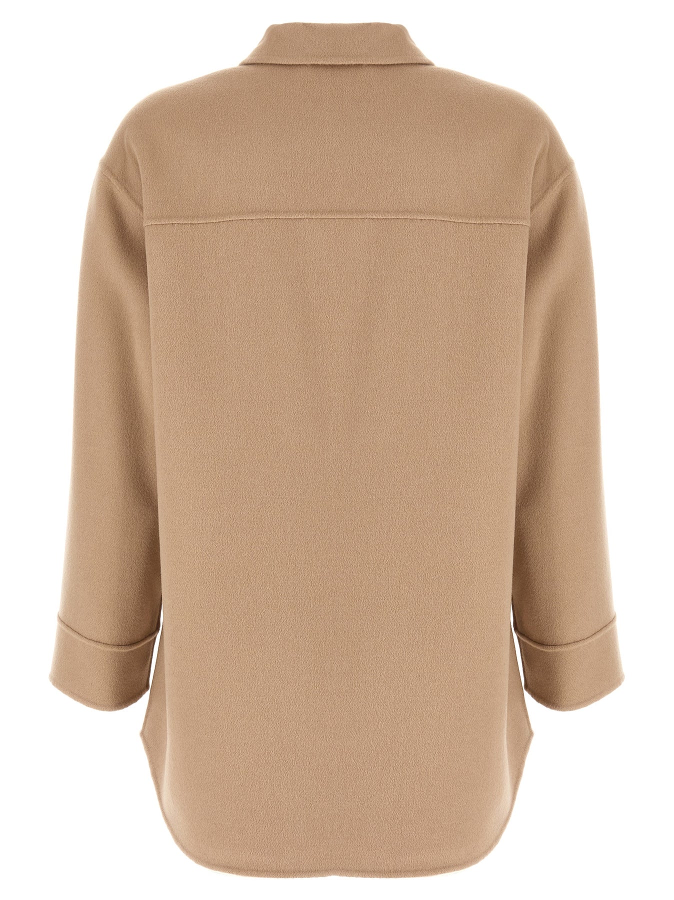 'Eleonora' shirt in double pure wool drap sewn by hand, front metal button closure, pockets, long sleeves with dropped shoulders.