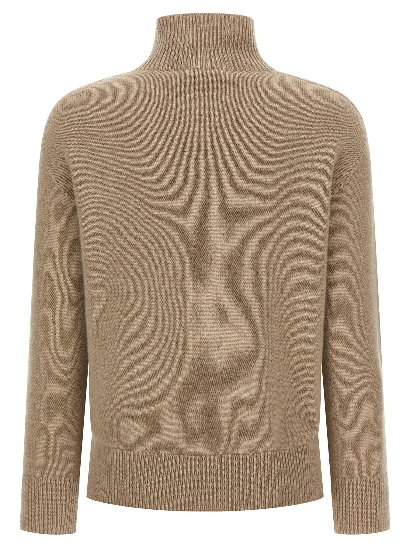 'Quercia' turtleneck sweater in pure cashmere yarn, seamless workmanship, high neck, long sleeves with cuffs and dropped shoulder, side slits.