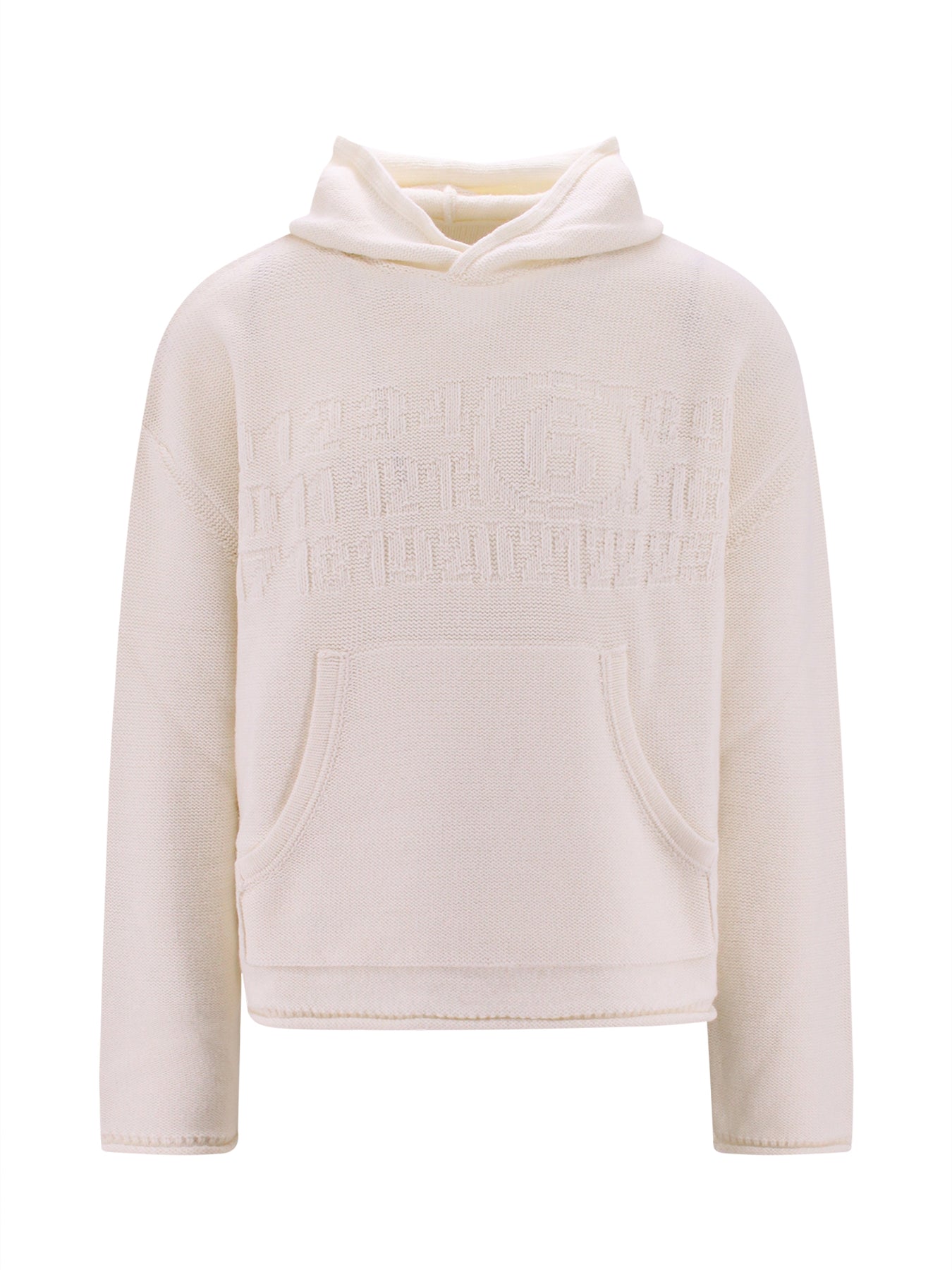 SKU: S52GP0150S18286_100J - Hooded long sleeve embroidered logo on the front kangaroo pocket on the front 70% virgin wool 30% acrylic