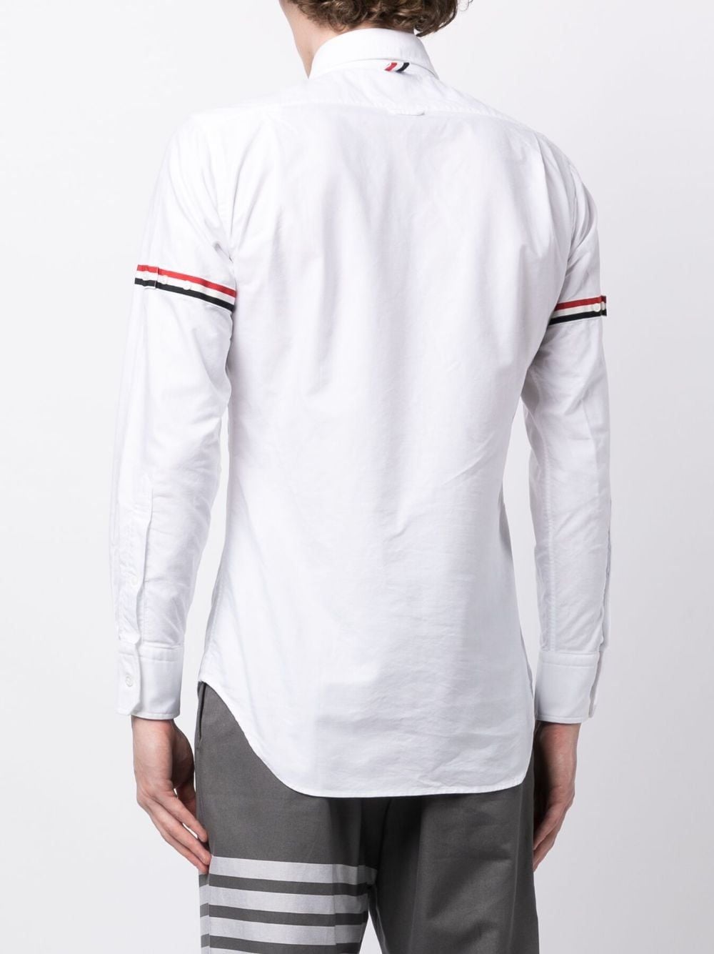 white cotton RWB stripe signature grosgrain loop tab logo patch to the front classic collar front button fastening long sleeves curved hem