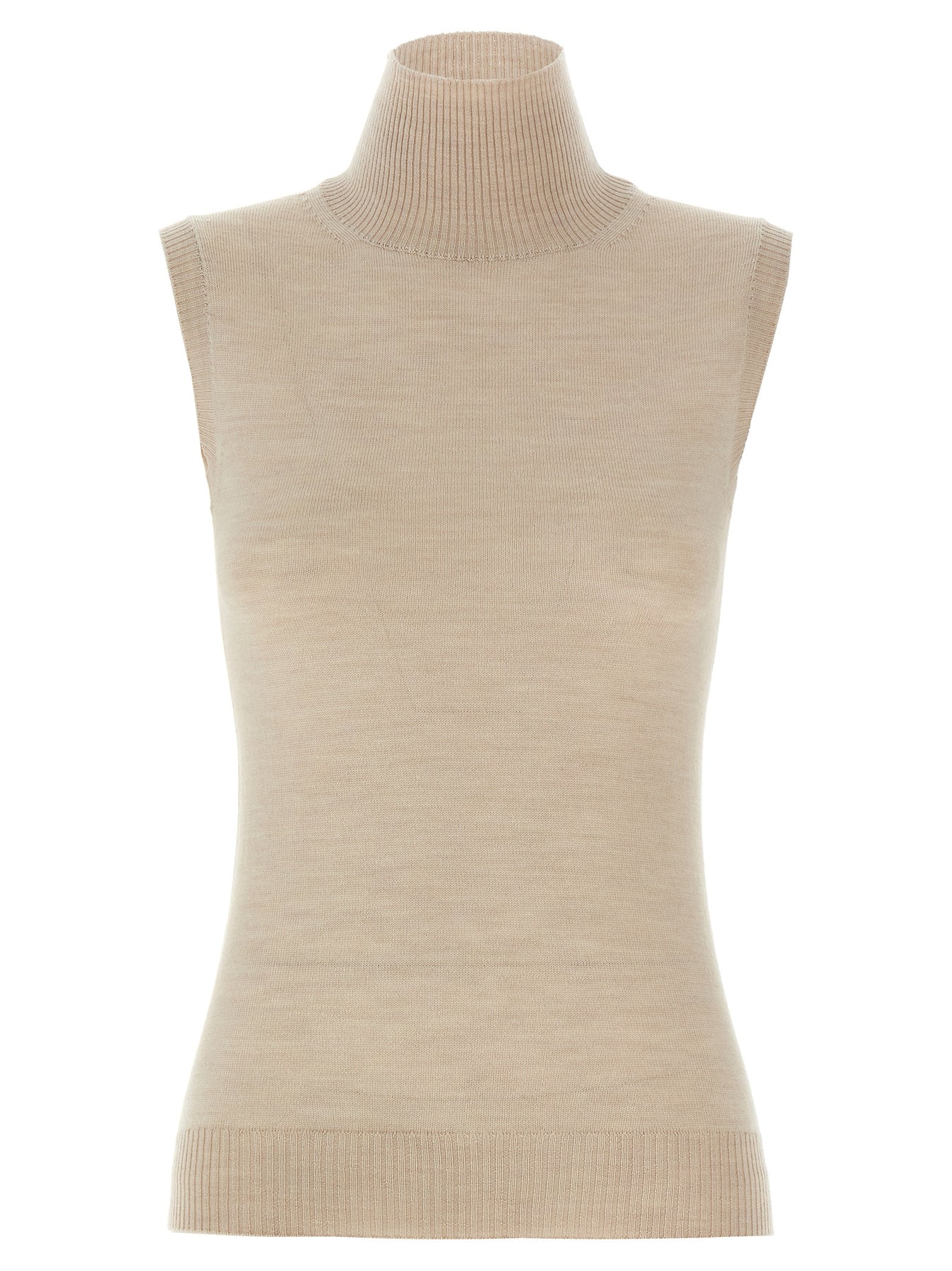 'Vertigo' breast in pure wool yarn thin, high neck, sleeveless.