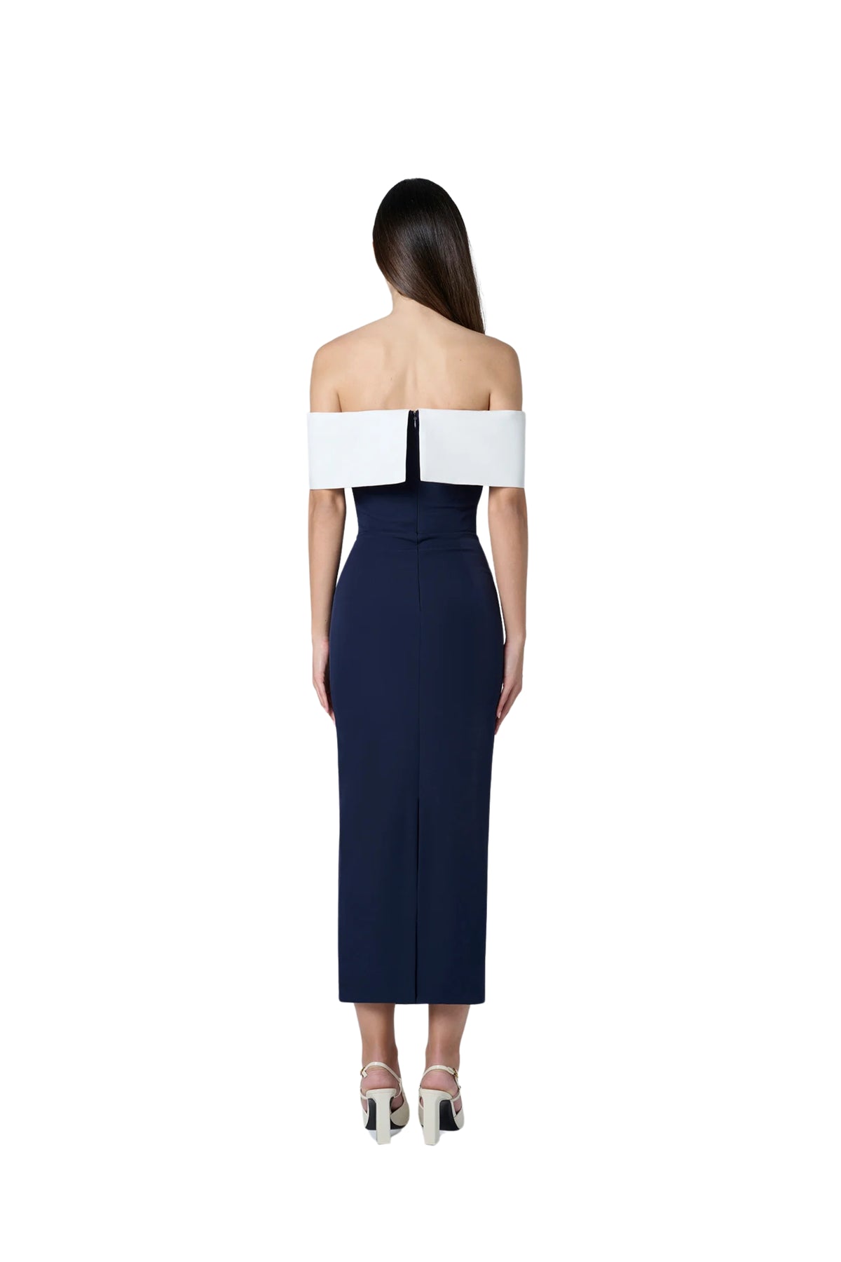 The Archivia Rever Black Dress. Strapless design, back zip closure, and slit.
