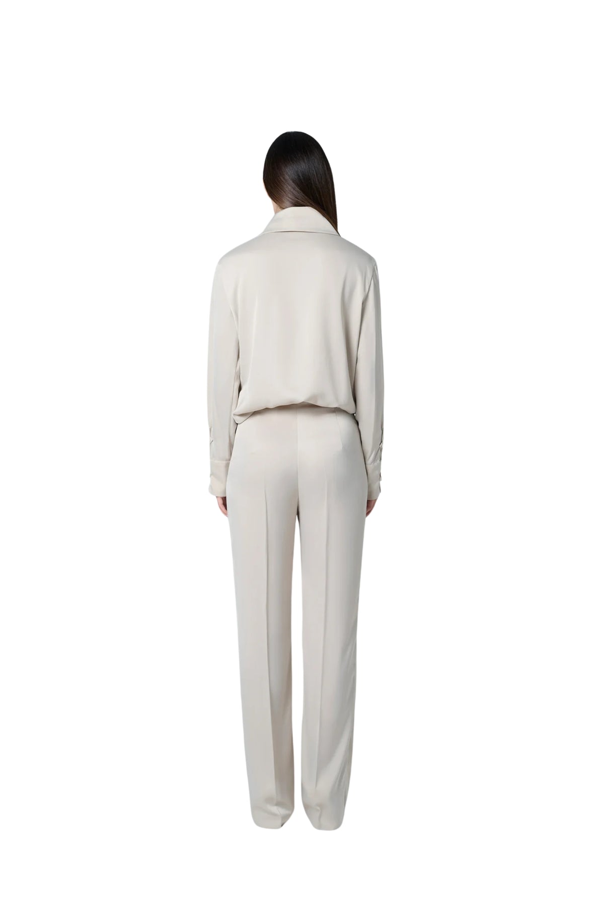 The Archivia Sea Ivory Co-Ord. Set composed of a button-up shirt and high-waisted trousers.