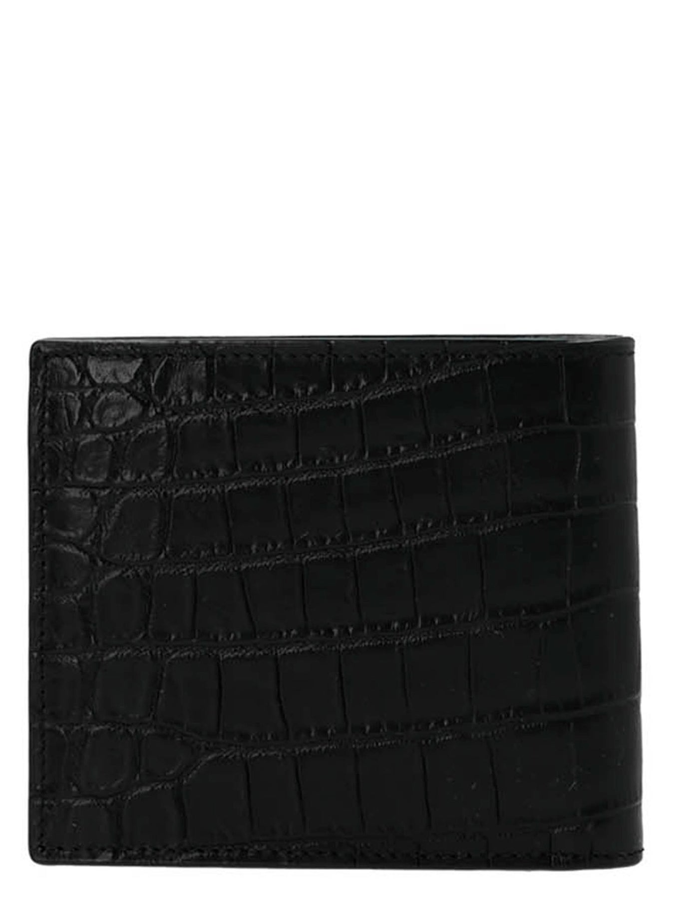 'Monogram east/west' wallet in croc print leather with metal logo.