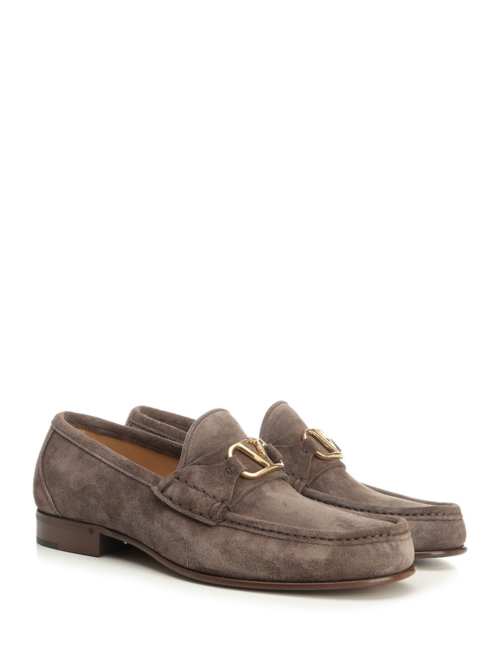 VLogo Signature suede loafers with metal Vlogo and leather sole