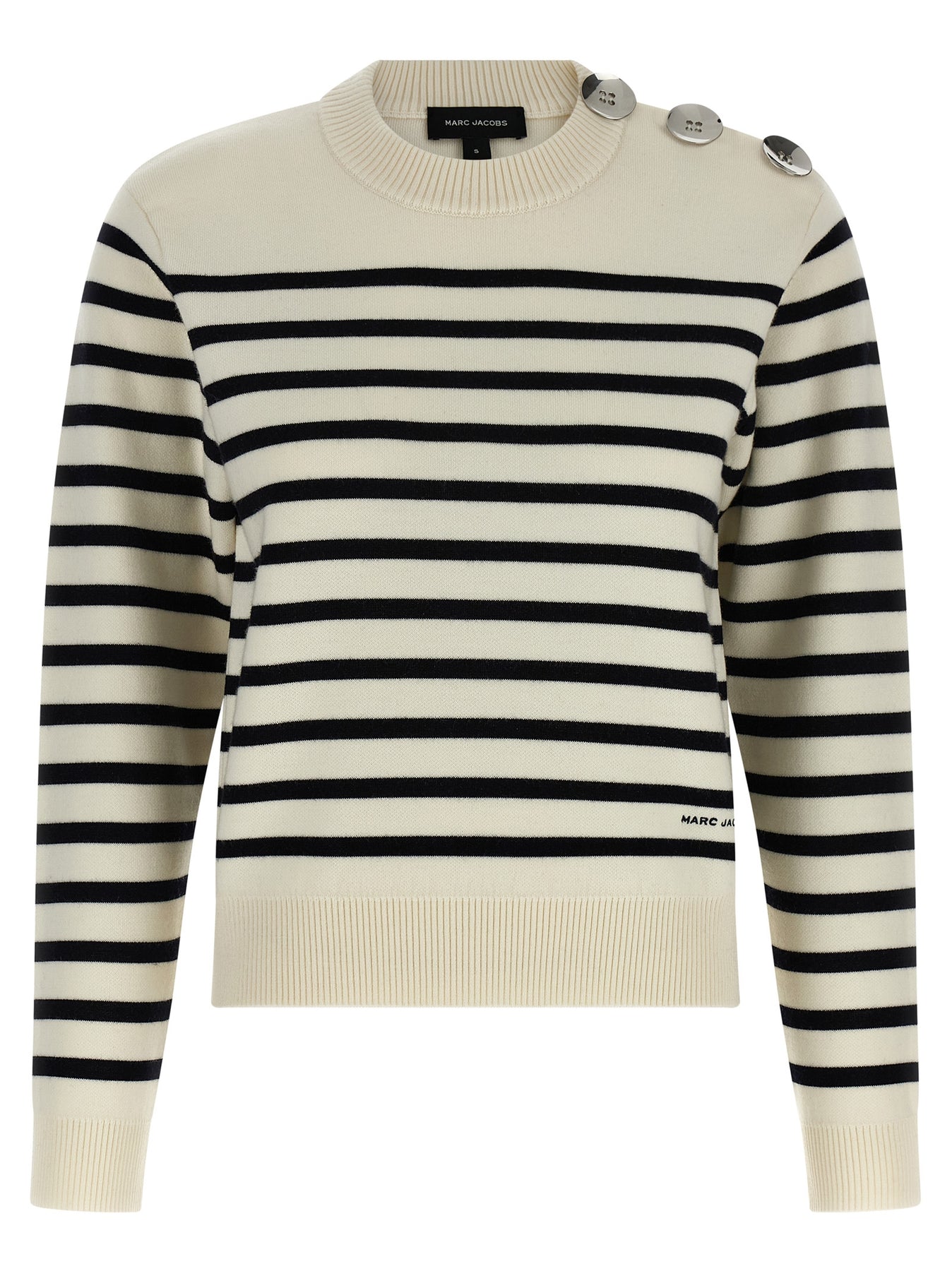 'Breton Stripe' wool sweater with crew neck, button detail on the shoulder, long sleeves.