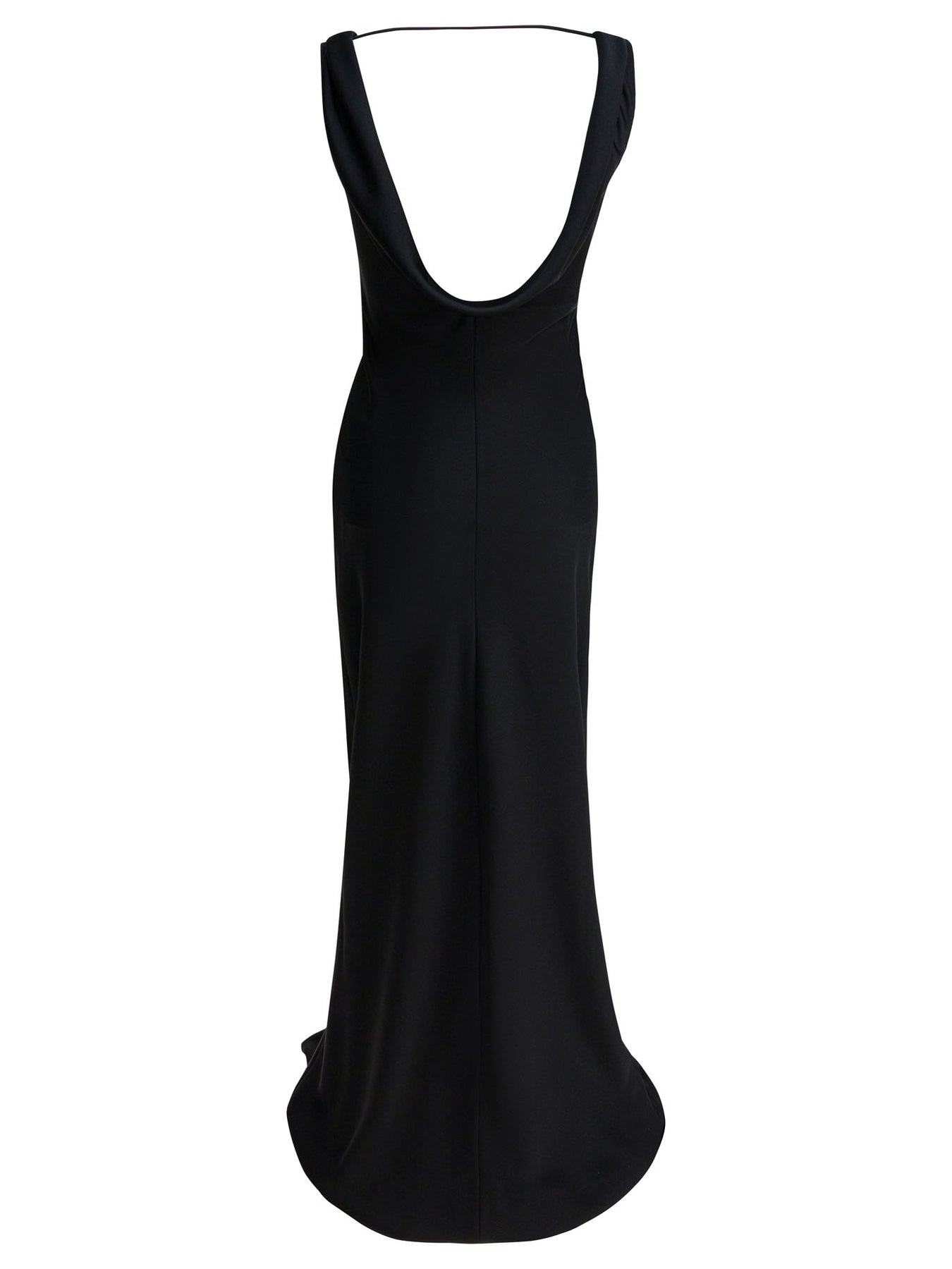 Semper long, flared dress made of synthetic fabric. The construction features an elongated silhouette with a flared line to the bottom. The main body features a concealed side zipper closure, while the back profile incorporates a soft drop at the back. The cut appears sleeveless and follows a linear structure with attention to functional details. || - Solid color - Flared dress - Sleeveless - Concealed side zipper closure - Soft back drop - Regular fit