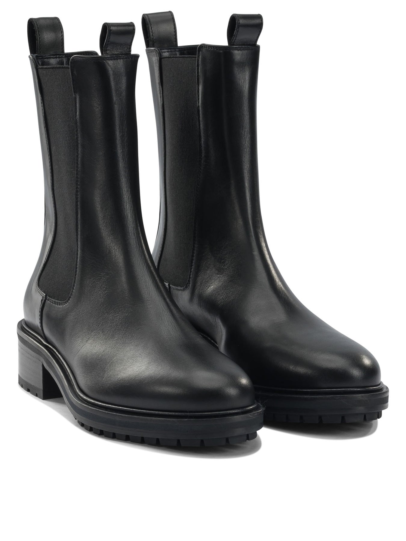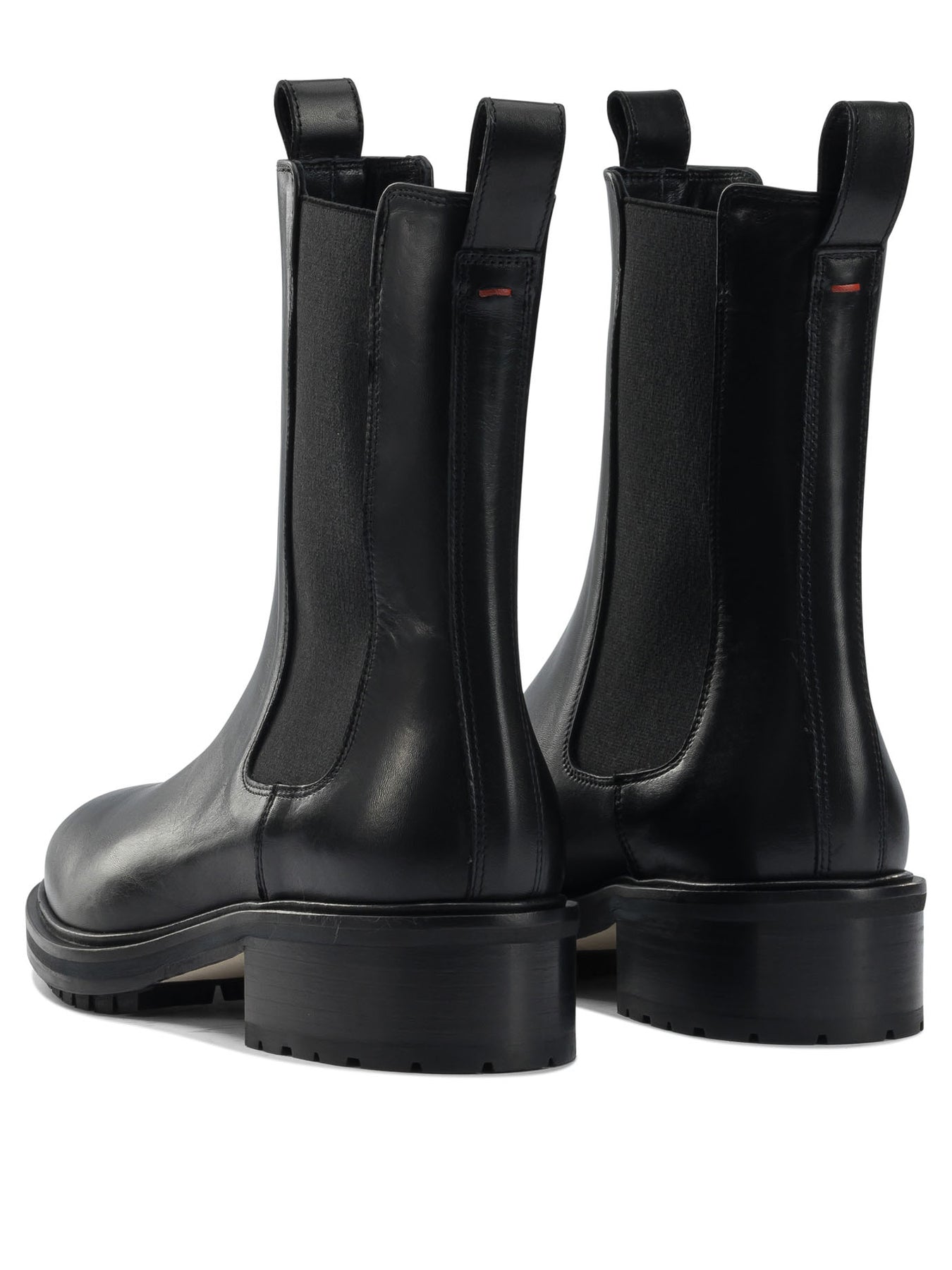 Aeyde's "Jack" chelsea ankle boots, made of calfskin leather, feature a compact structure with a squared line and clean profile. The model features a smooth upper, elasticized panels at the sides and a back tab for easy donning. The sole with layered rubber tread provides durability and grip, while the wide heel ensures stability during use. || - Calf leather - Elasticized side panels - Rubber outsole with layered rubber tread - Wide, sturdy heel - Back and front tongue - Compact profile construction