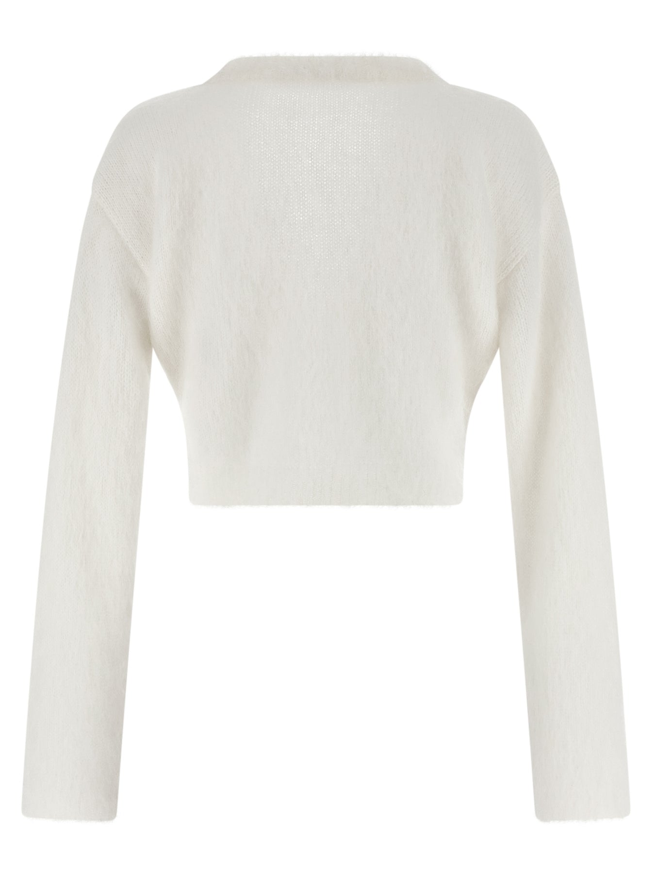 Carded Mohair' cardigan in alpaca and wool blend with embroidery and cut-out details, crop model, V-neck, front button closure, long sleeves.