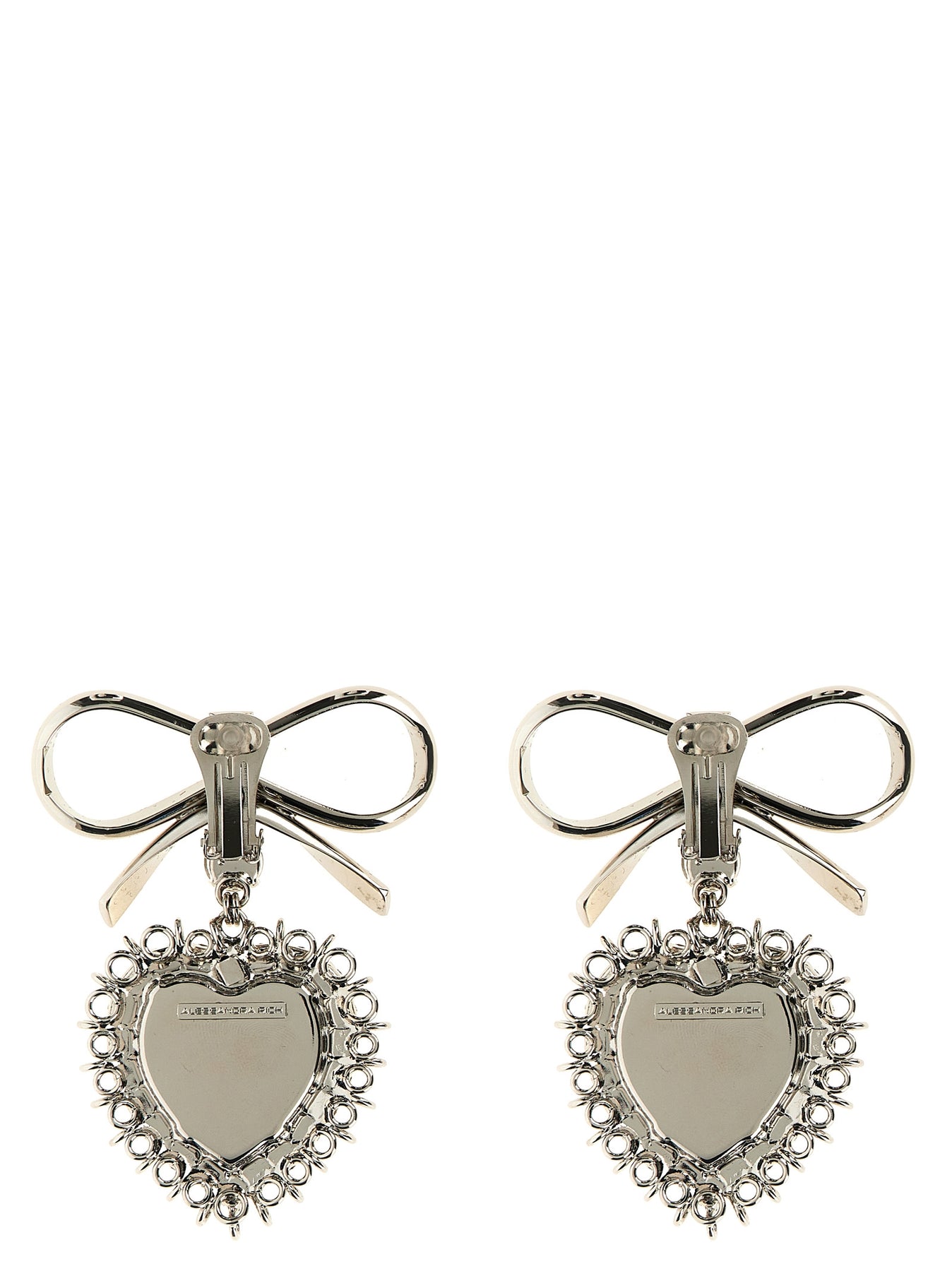 Metal bow earrings, with heart-shaped crystal pendant, clip closure. THIS PRODUCT CANNOT BE RETURNED.