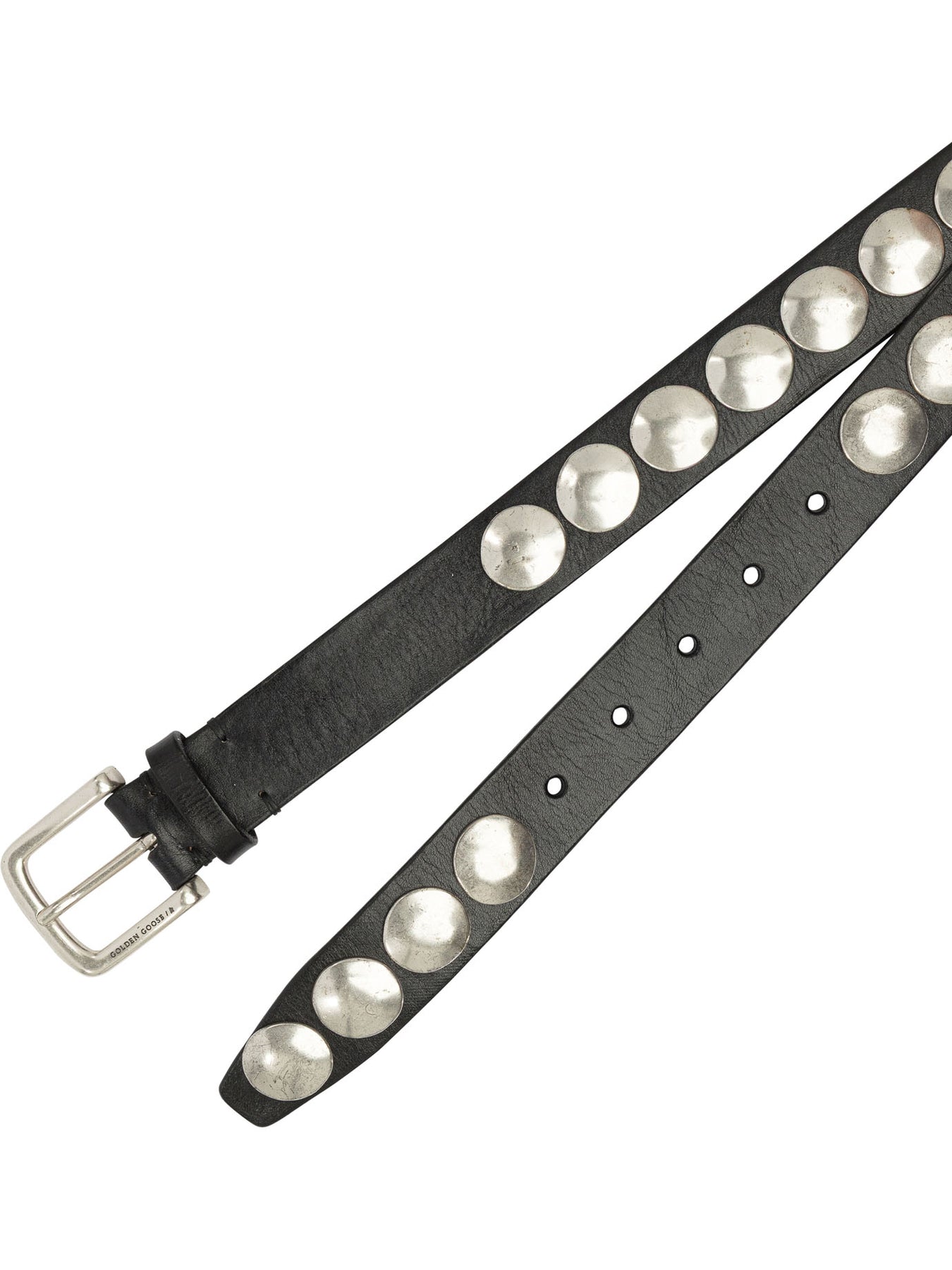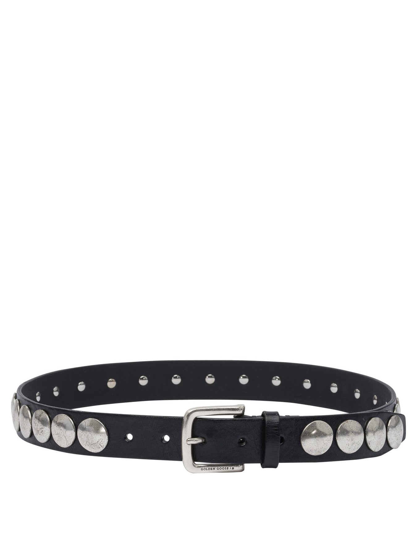 Golden Goose's "Trinidad" belt represents a balance of traditional craftsmanship and contemporary design. Made from a high-quality washed leather, it is an accessory that fits perfectly in the wardrobe of a woman looking for a distinctive touch to complete her outfit. Attention to detail and craftsmanship make this product a versatile and elegant choice for a variety of wear occasions. || - Applied studs - Adjustable closure - Eco-friendly product