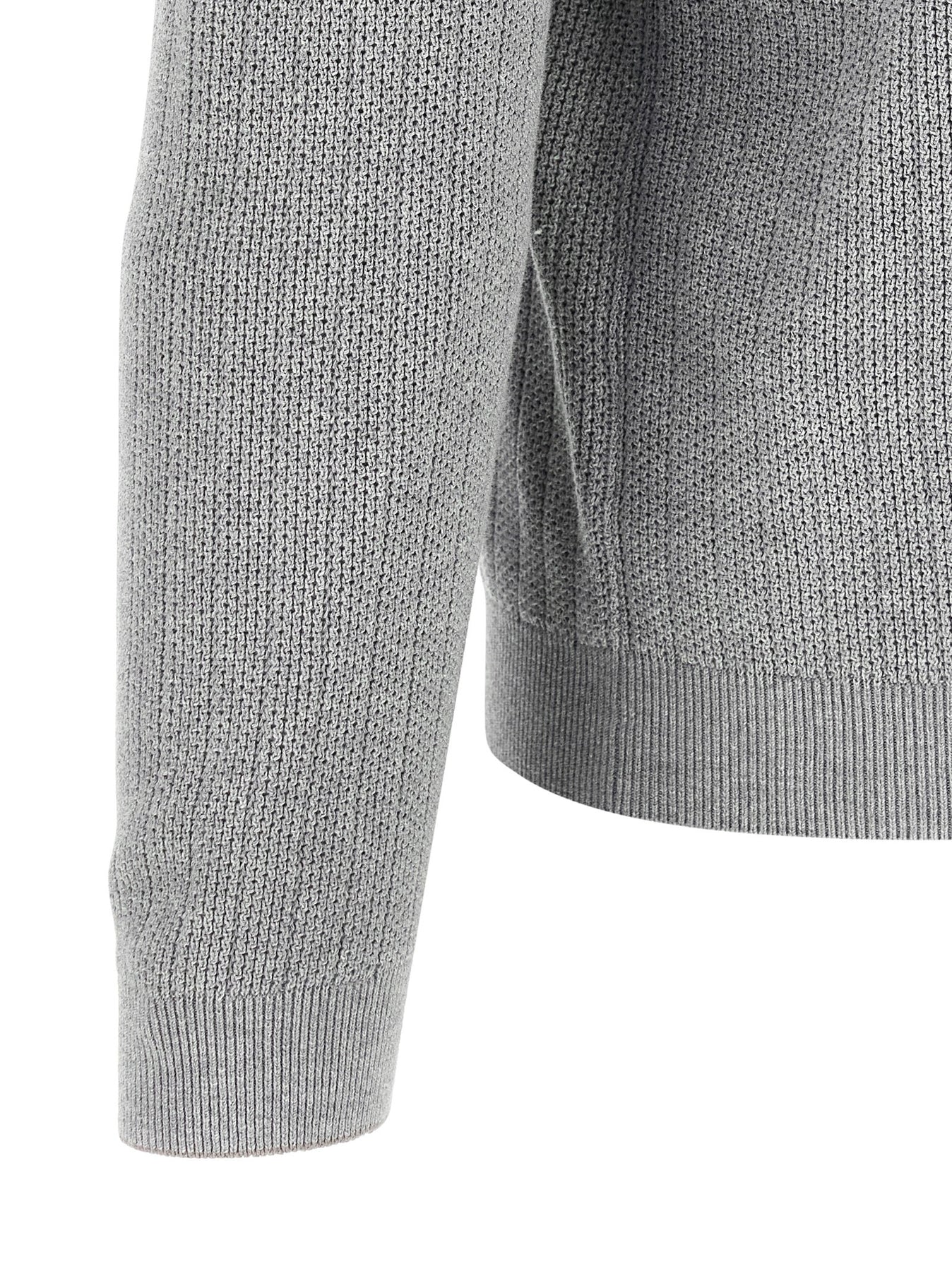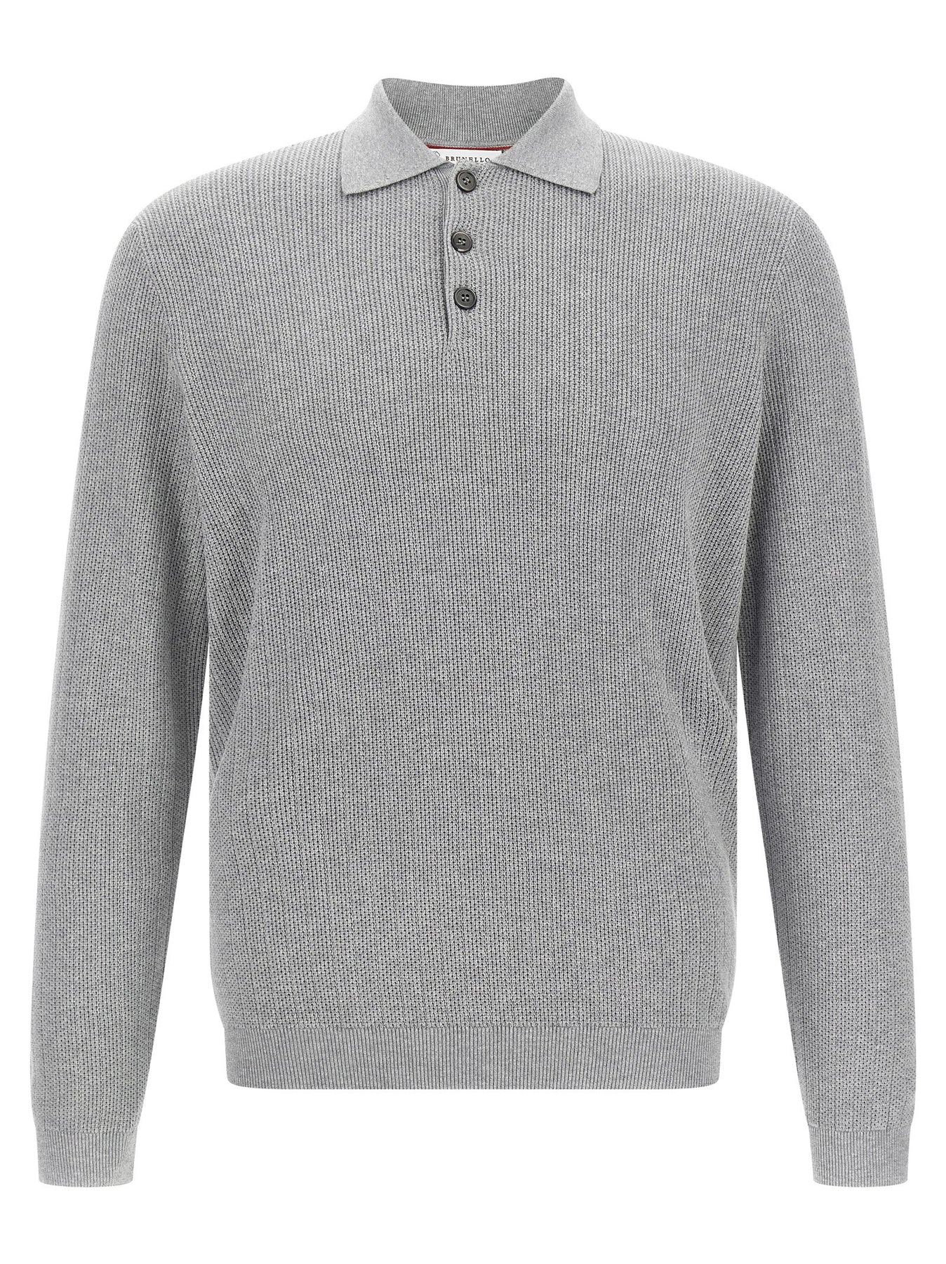 Pure cotton knit polo shirt with honeycomb texture, ribbed knit, collar and buttons, long cuffed sleeves.