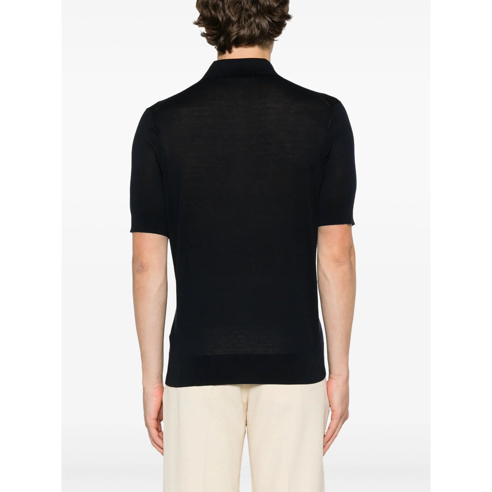 navy blue front button placket polo collar short sleeves