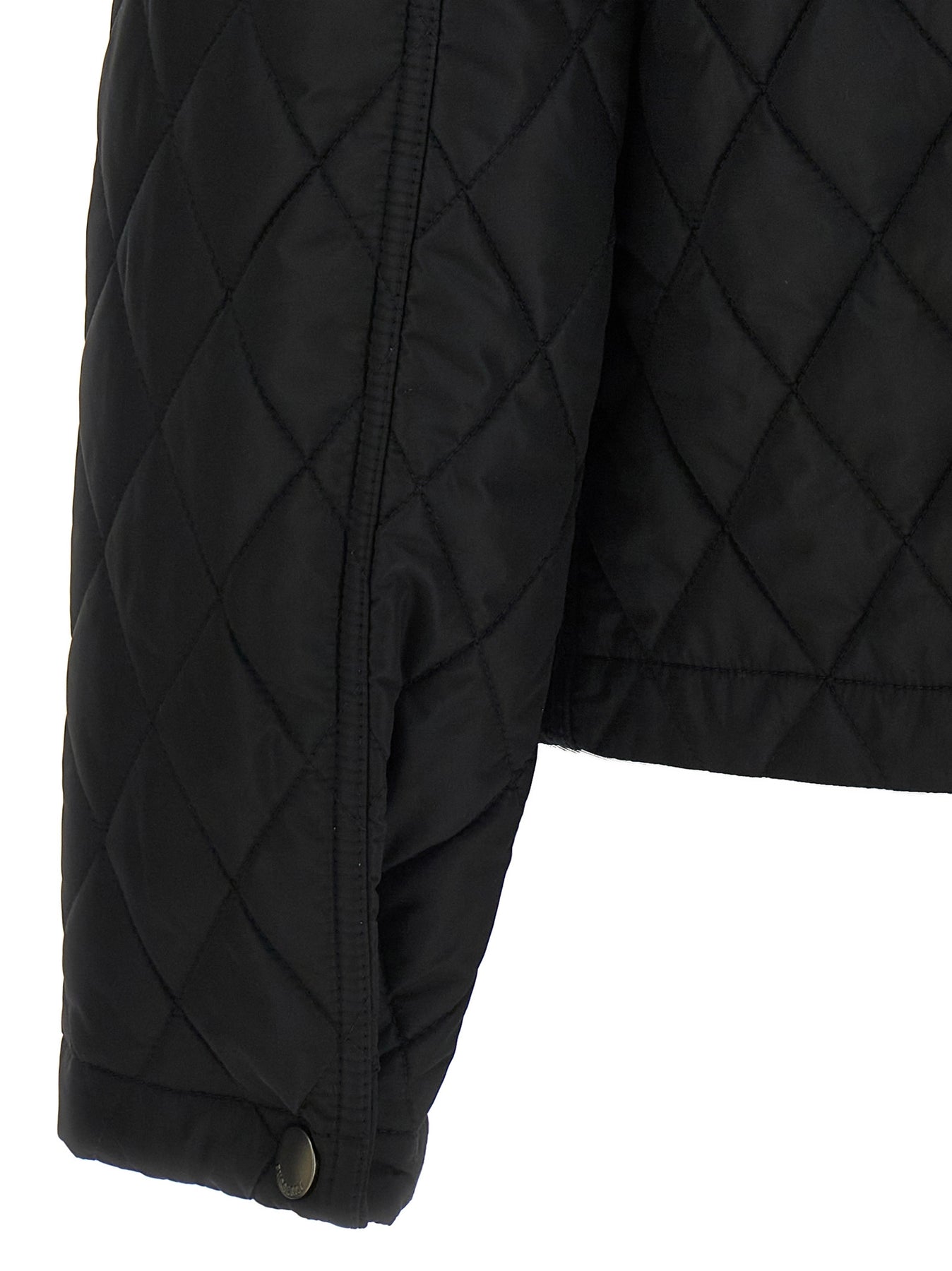 Pembroke' quilted nylon jacket, Burberry Check cotton twill lining, crop style, adjustable hood, front zip and snap button closure, pockets, long sleeves.