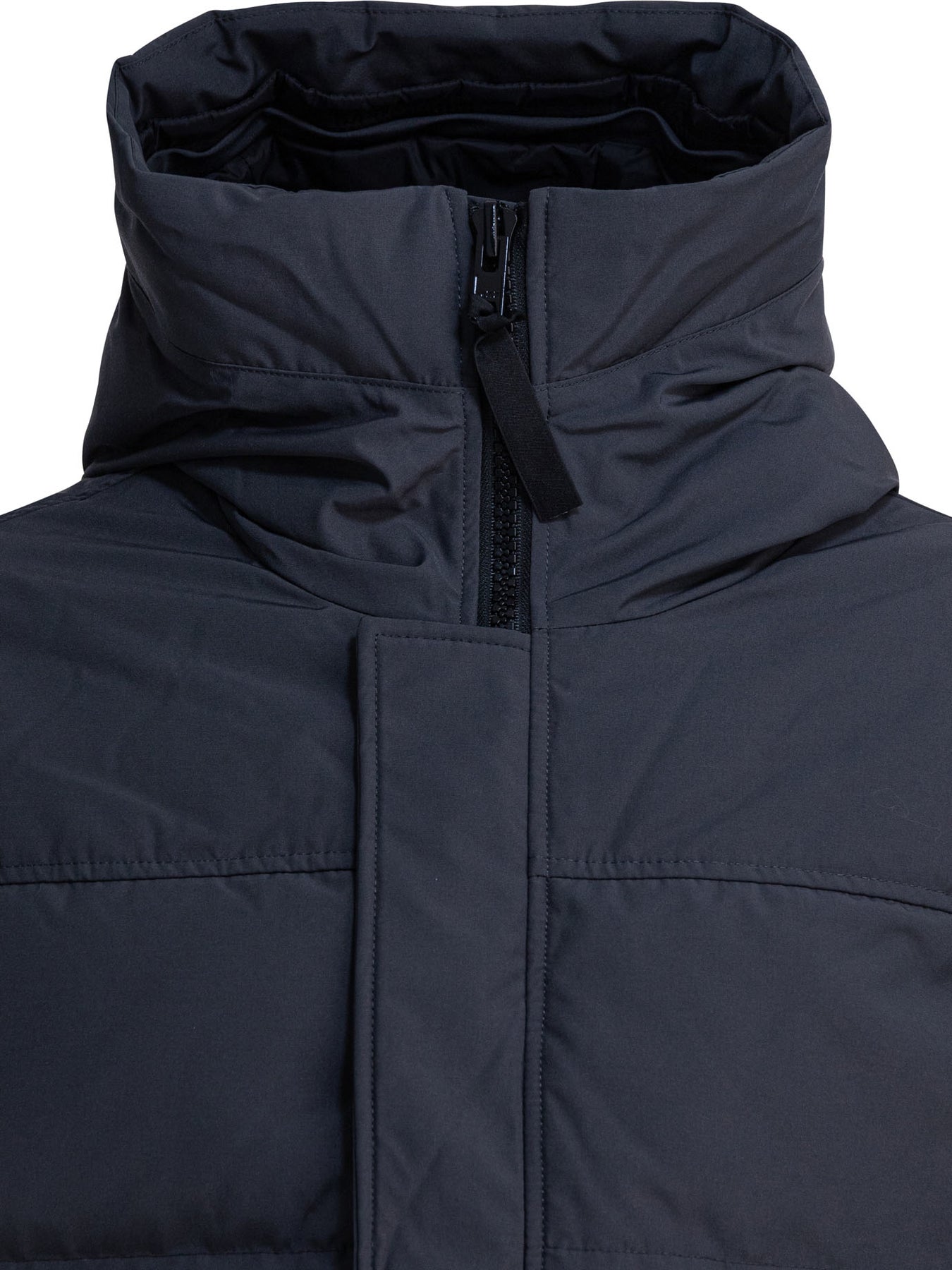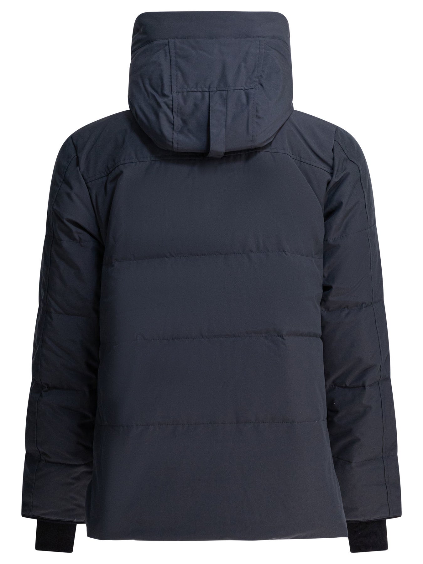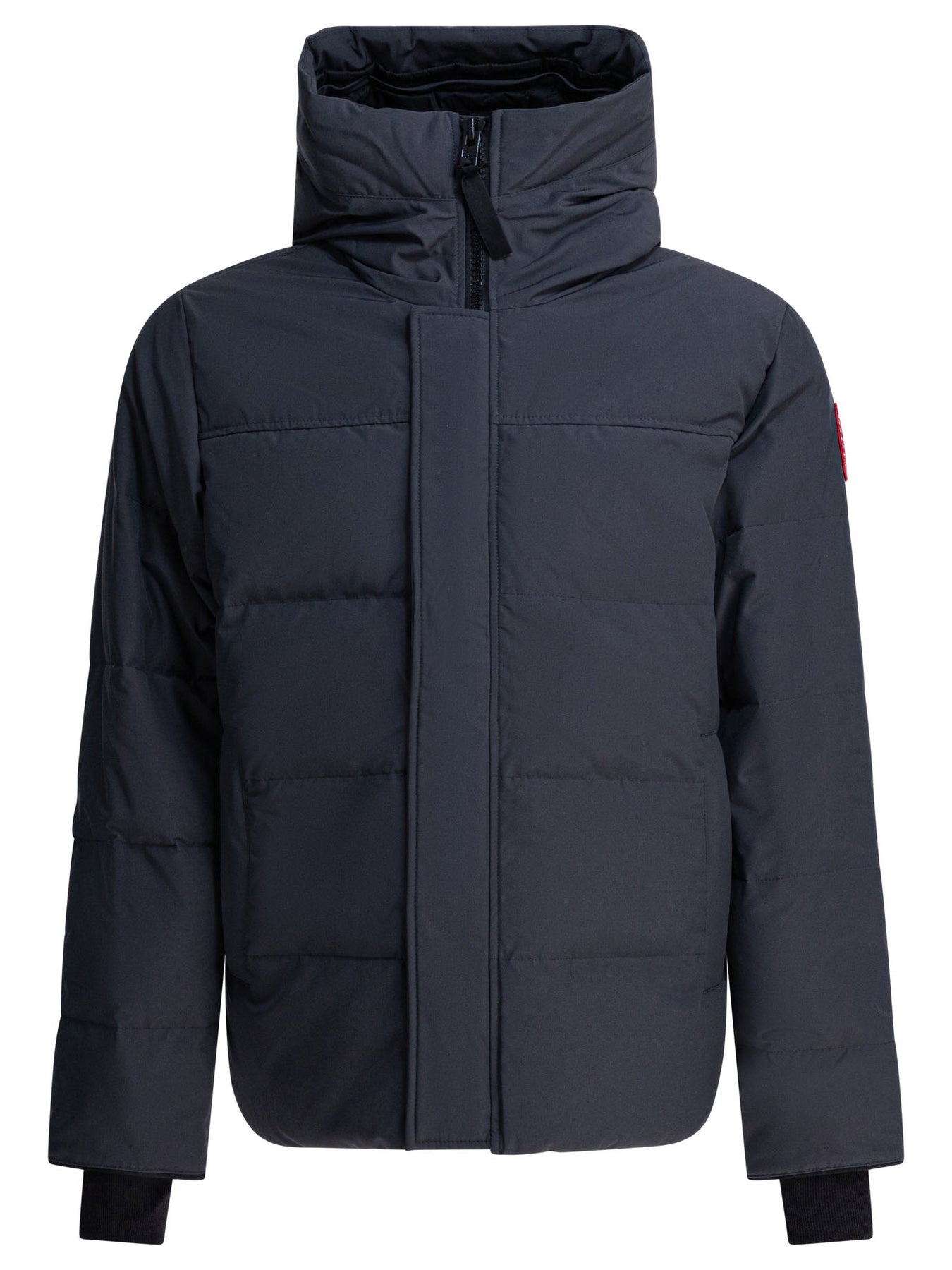 Canada Goose "MacMillan" down jacket made of 84% polyester and 16% cotton technical fabric with responsible duck down filling. The construction features a wide silhouette, hip length with a longer back cut and horizontal quilting. The padded, adjustable snorkel hood with removable zipper guard is accompanied by streamlined details. Long sleeves and cuffs reinforced with Cordura® fabric increase strength in abrasion-prone areas. || - Solid color - Long sleeves - Horizontal quilting - Adjustable hood with removable protection - Tricot-lined chin guard - Flap with snap buttons on two-way zipper - Inner storm flap - Lining with backpack straps for portability - Cordura® reinforcements on sleeves and cuffs - Two zippered fleece-lined outside pockets - Three inside pockets - Regular fit