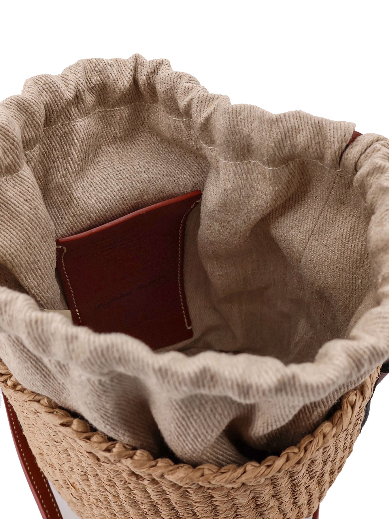 Adjustable drawstring closure Shoulder strap with logo lettering Internal lining Raffia W: 17 cm, H: 16 cm, D: 16 cm SKU:CHC23AS381L18915