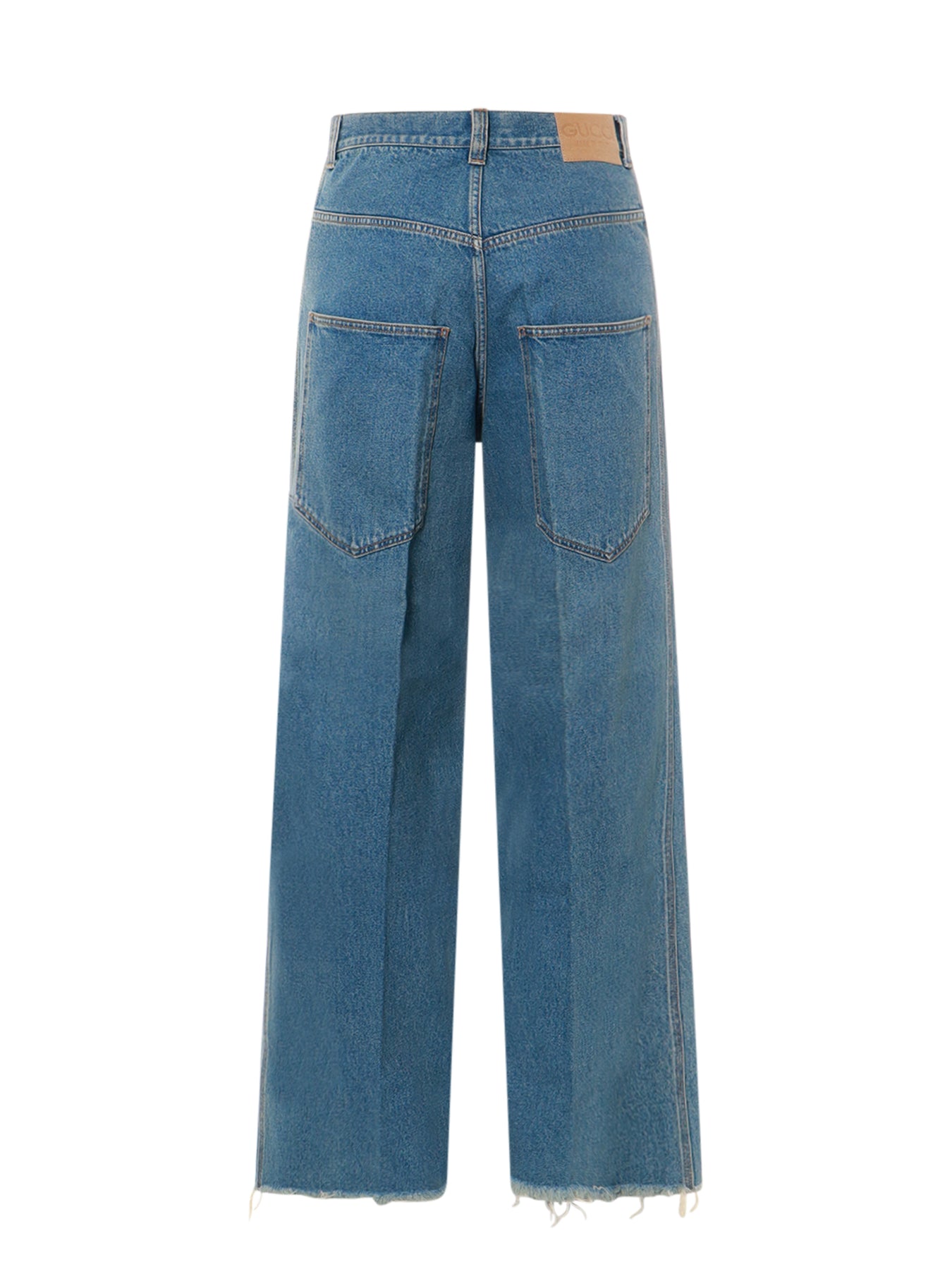 SKU: 758153XDCU0_4011 - Closure with metal buttons wide leg with frayed bottom gucci made in italy leather tag made in italy 100% cotton