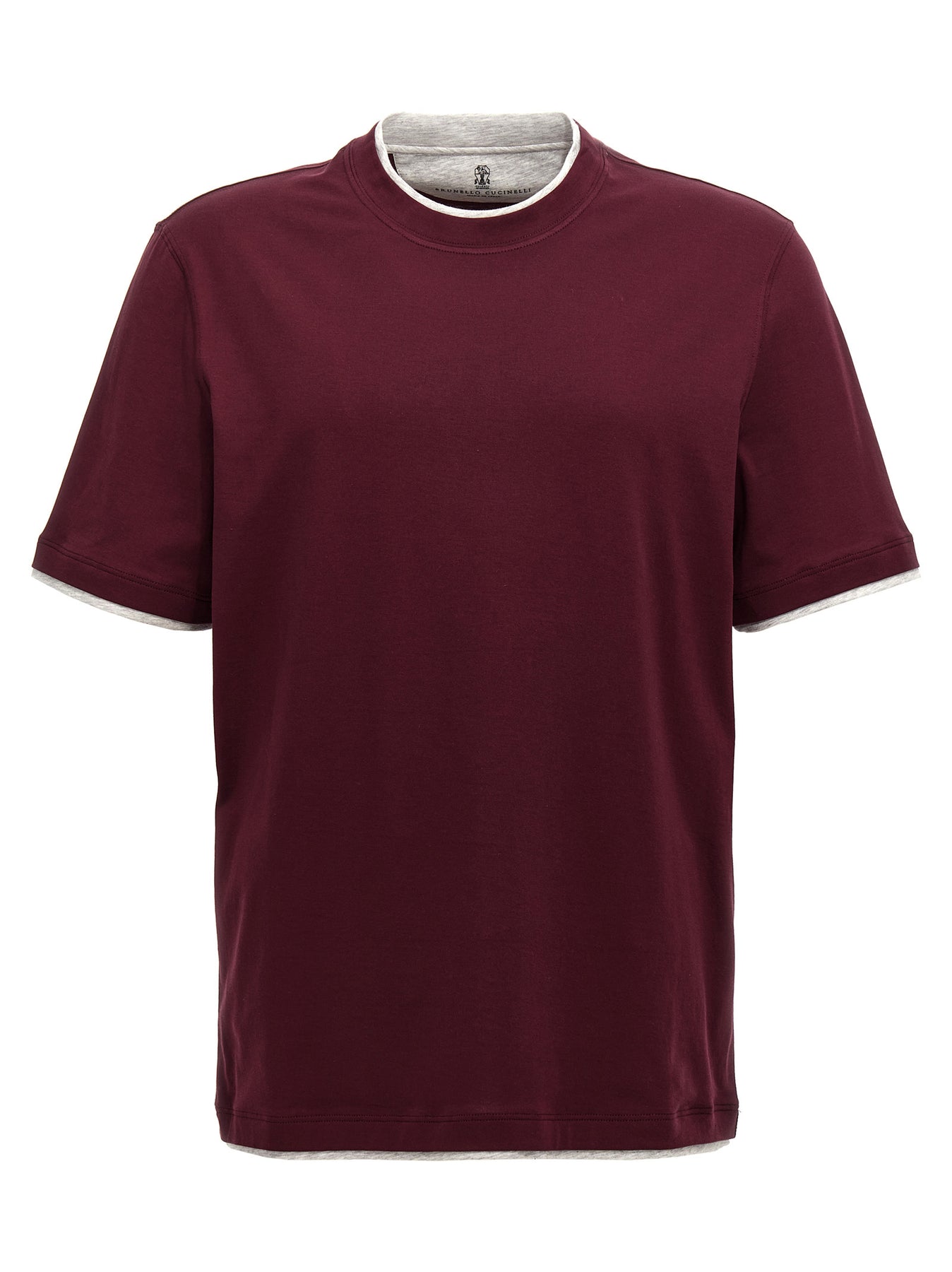 Cotton, crewneck t-shirt with short sleeves and a double layer effect.