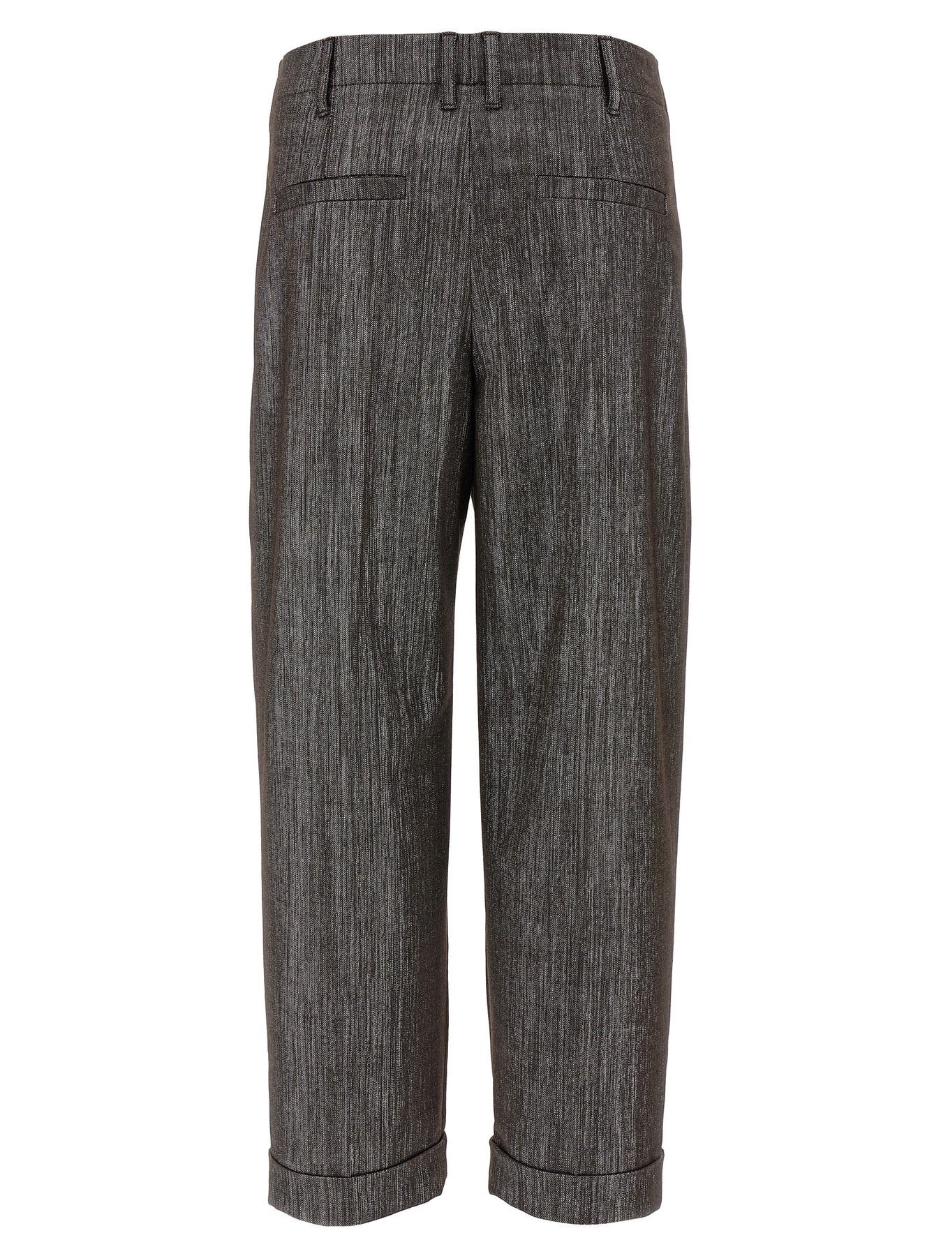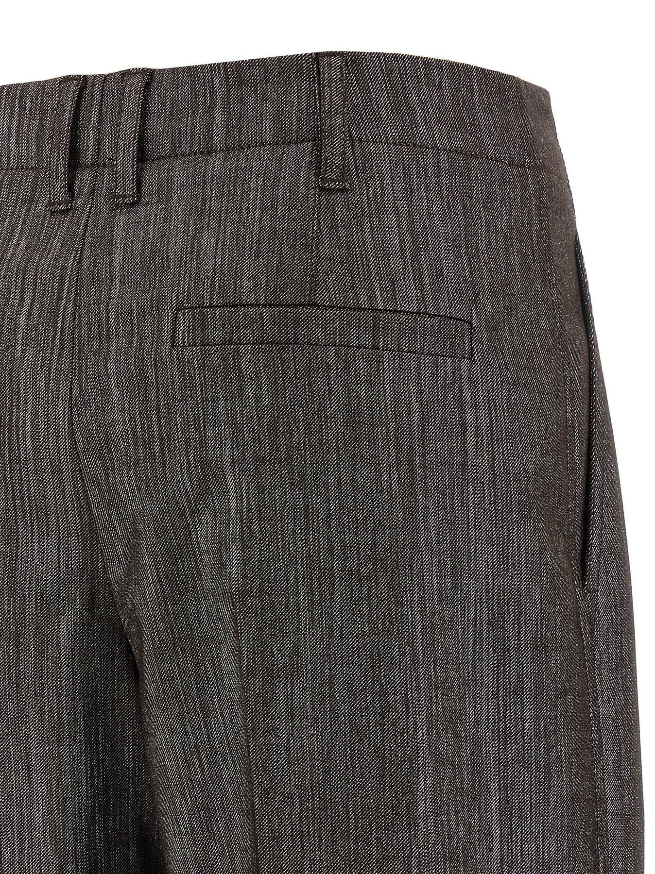 Viscose and wool blend trousers with lurex threads, pins, stretched pleat, zip hook and front button closure, pockets, turn-up on the leg bottom.