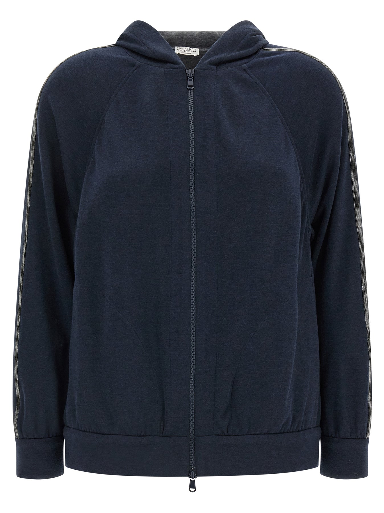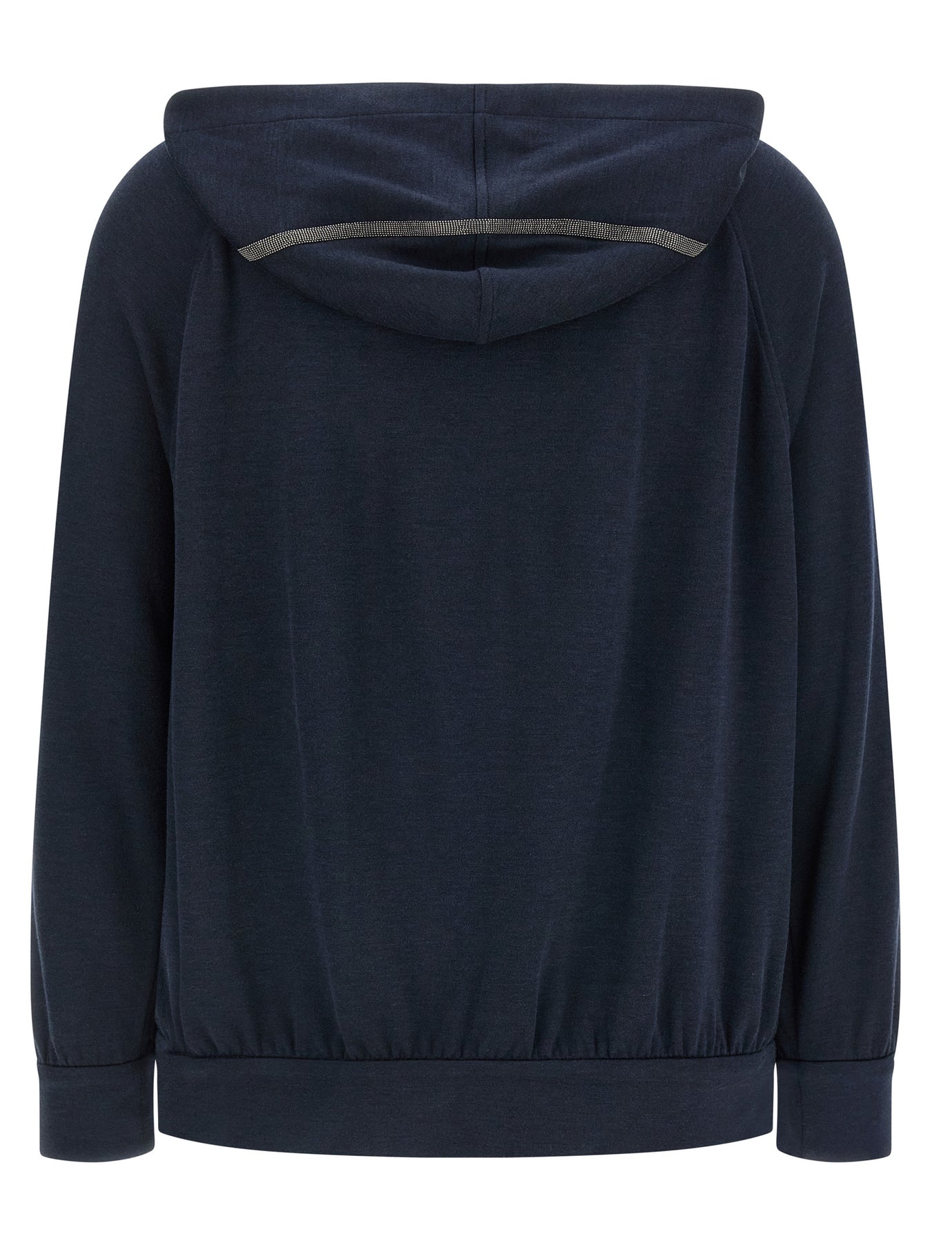 Cotton and silk blend hoodie, front zip closure, pockets, long sleeve with cuffs and Monile detail.