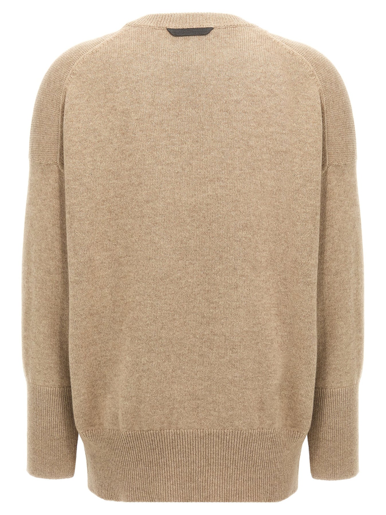 Cashmere crewneck sweater with Monile detail on the back, long sleeves with cuffs and dropped shoulders.