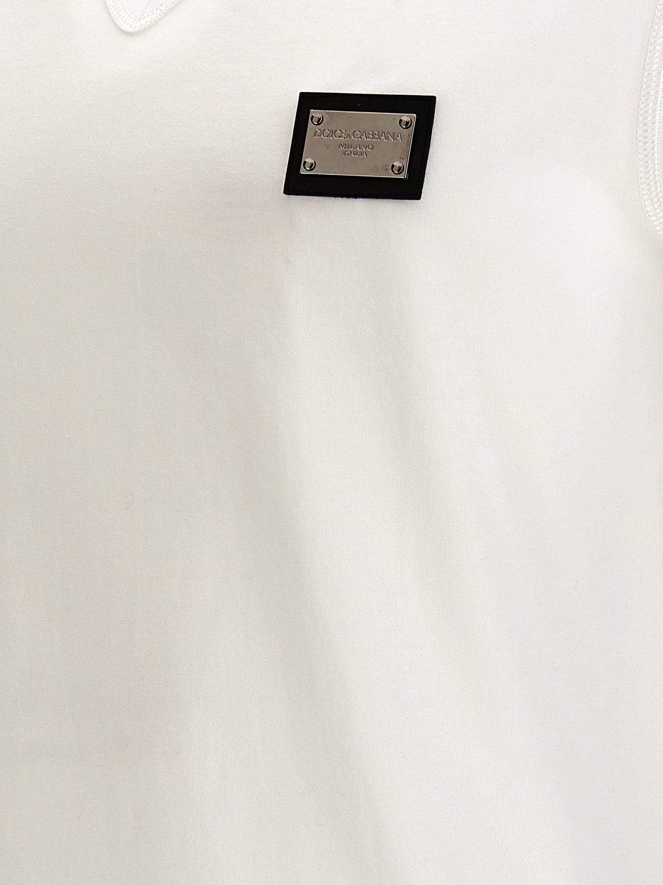 V-neck T-shirt in cotton with logo plaque on the chest.