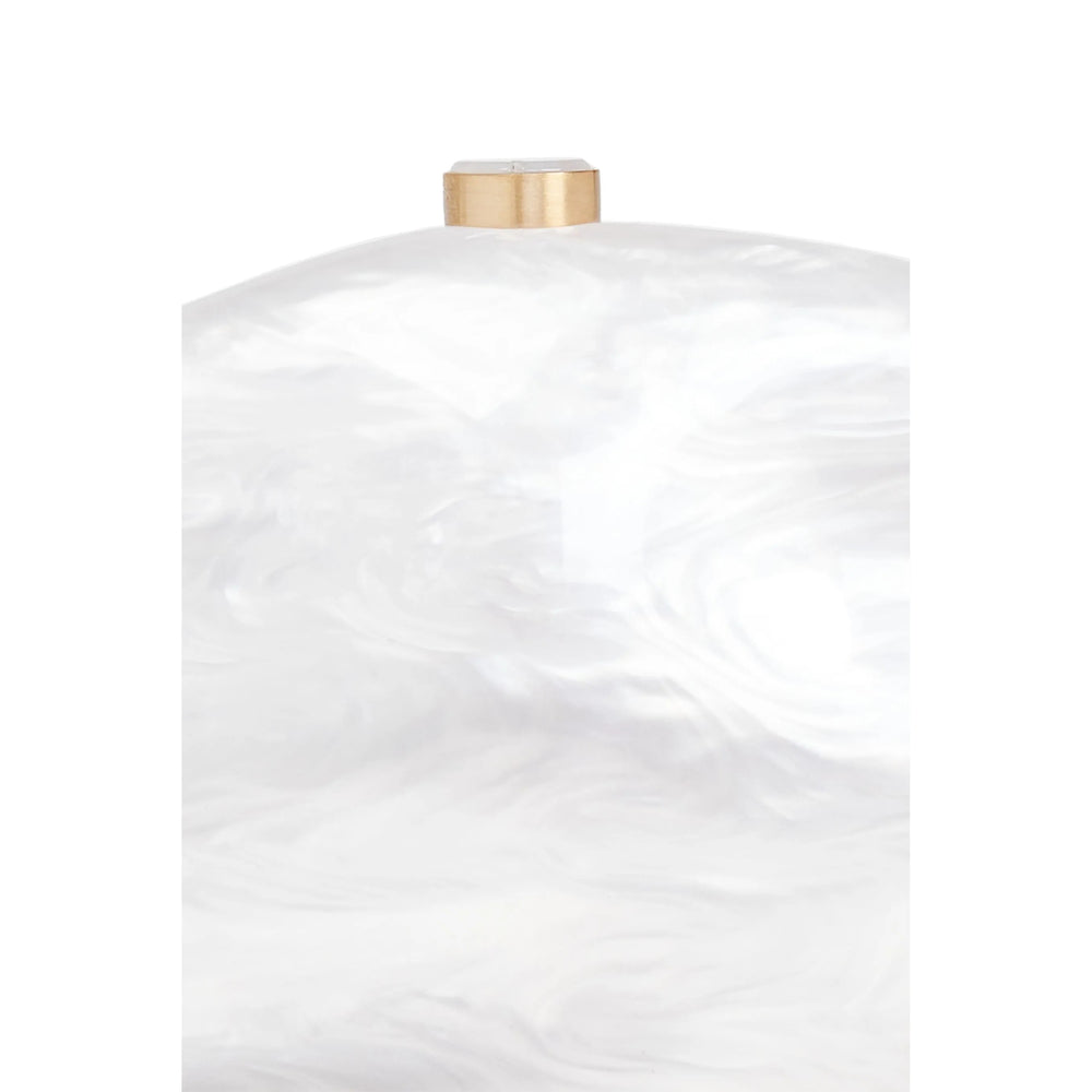 white pearlescent finish sculpted design clasp fastening gold-tone hardware