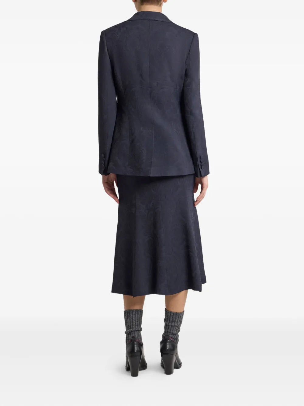 Paisley Print Blazer Origin: Italy Features Dark blue Paisley pattern Two-button closure Notch lapels Welt pockets Stretch cady fabric Composition Outer: 97% viscose, 3% elastane Lining: 52% viscose, 48% acetate Care Instructions Read the manufacturer`s instructions ID WRCA003499TJD89