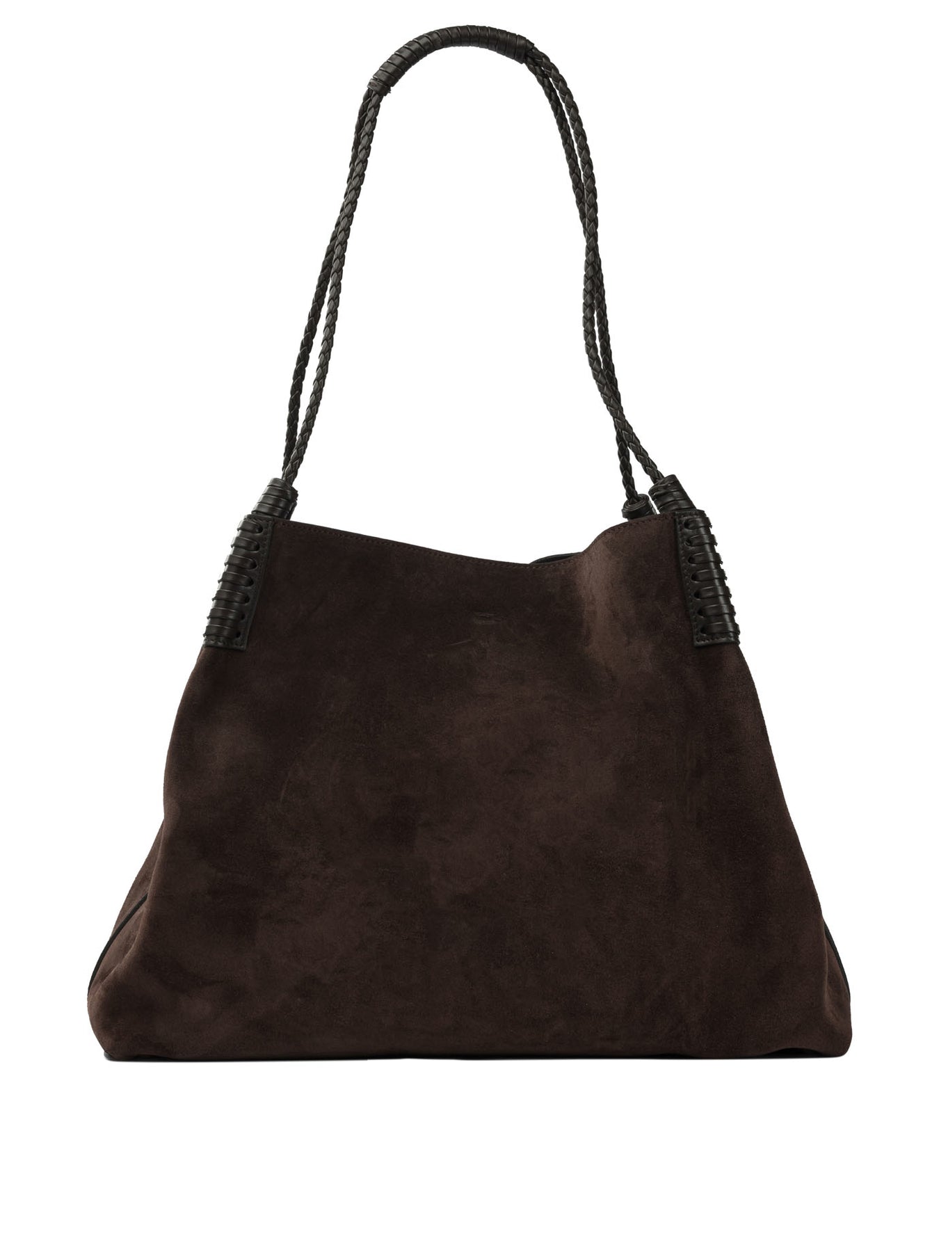 Etro "Libra" shoulder bag made of solid-colored suede and featuring a semi-rigid construction. The braided double handle allows for easy shoulder carry, while the clean silhouette is interrupted frontally by the hot-stamped Pegasus logo. The interior is unlined, keeping the structure essential and uncluttered. The top closure is secured by a metal snap hook. || - Solid-color suede - Frontal hot-stamped Pegasus logo - Double braided handle for shoulder carry - Unlined interior - Metal snap hook closure - Metal feet at base