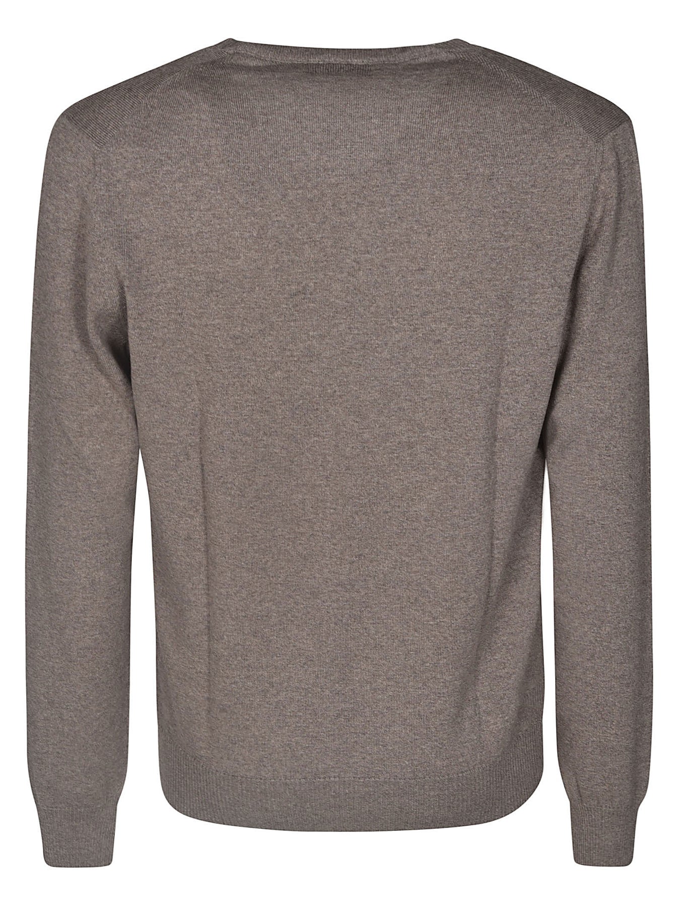V-neck fine-knit sweatshirt from FAY featuring grey, virgin wool, ribbed trim, fine knit, V-neck, long sleeves and straight hem.