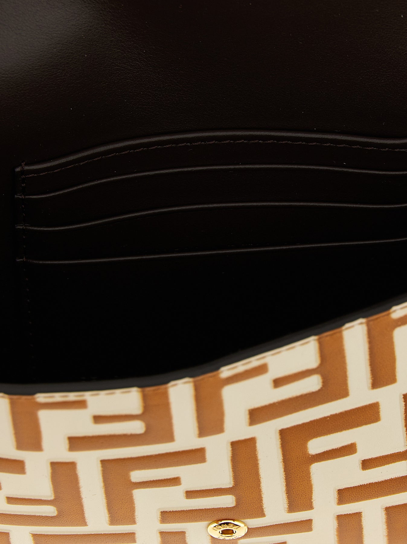'FF Diamonds' calf leather wallet on chain with embossed FF print, flap closure with snap button and diagonal metal FF logo, removable chain shoulder strap.