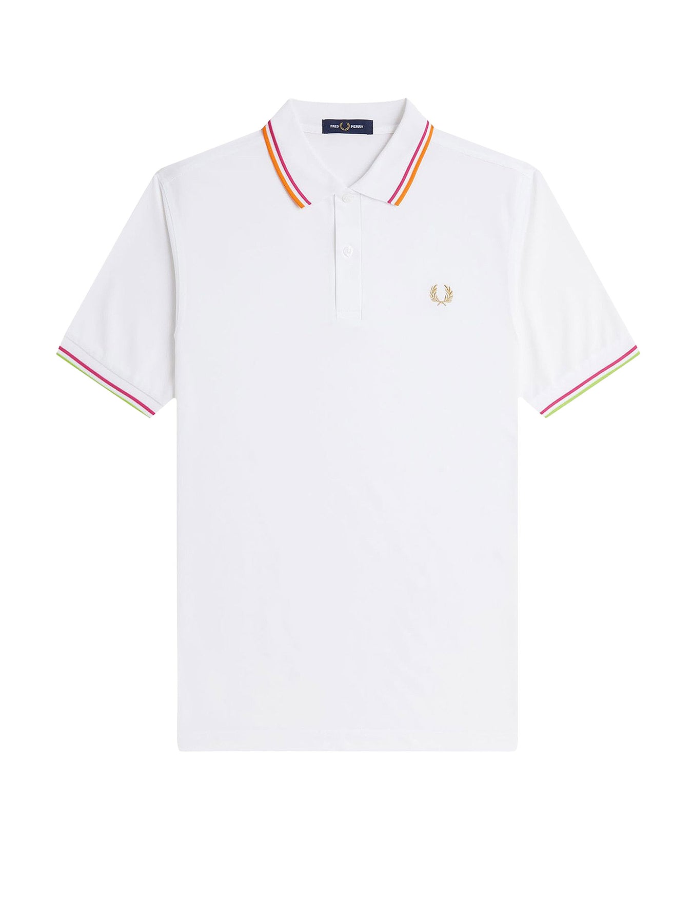 Closure with two buttons Classic collar with colored profiles Short sleeves Iconic embroidery 100% recycled polyester SKU: M983953_100