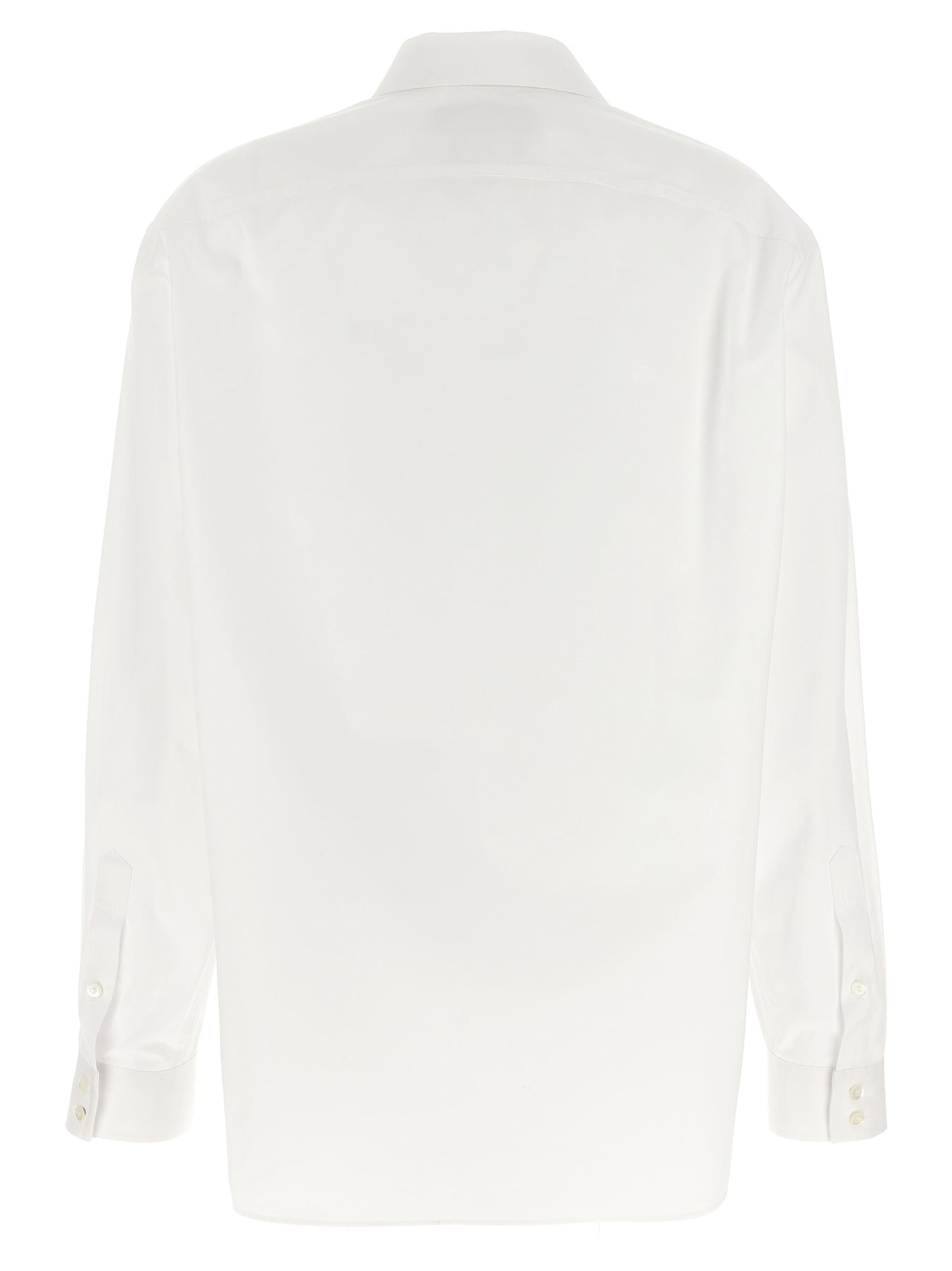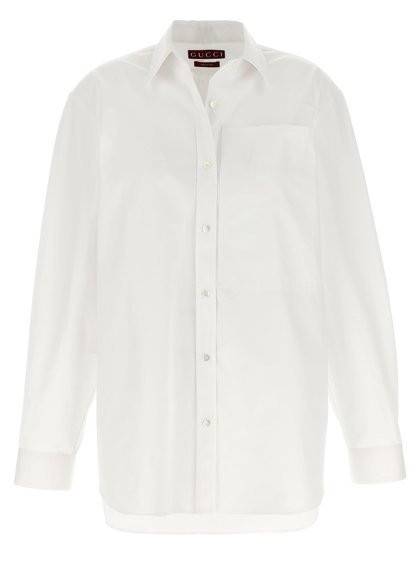 Cotton poplin shirt with collar with embroidered logo, front pocket, button closure, long cuffed sleeves.