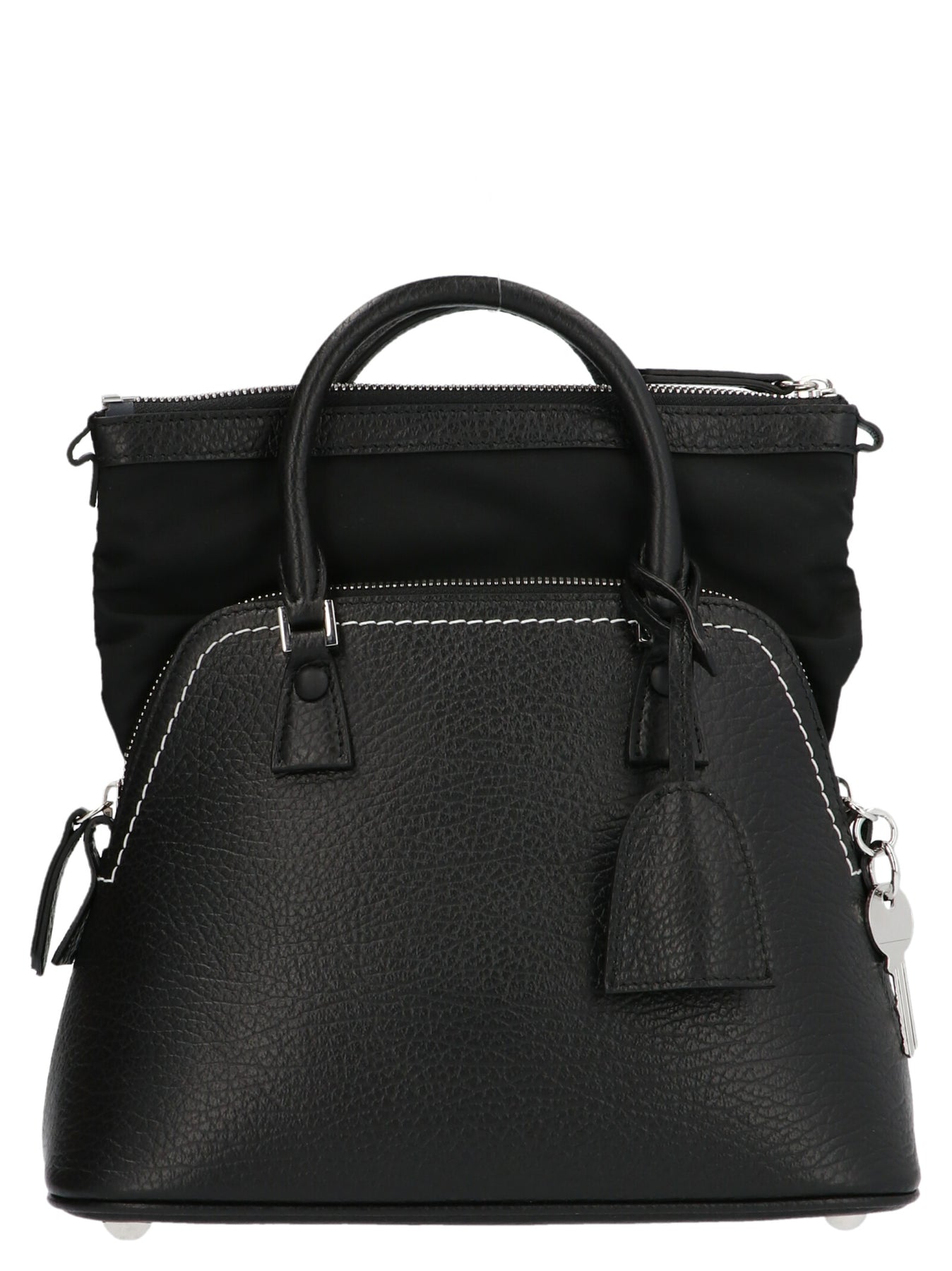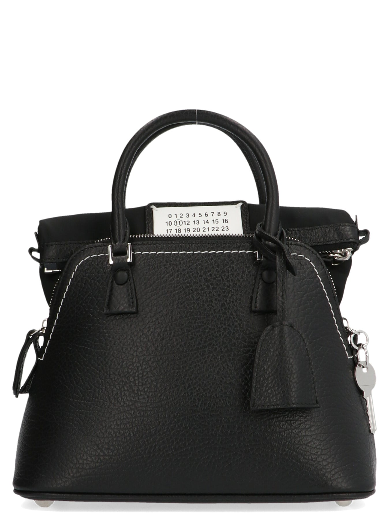 5AC Mini' leather and canvas handbag with zip closure, double top handle, with adjustable and removable shoulder strap and a logo detail.etail.