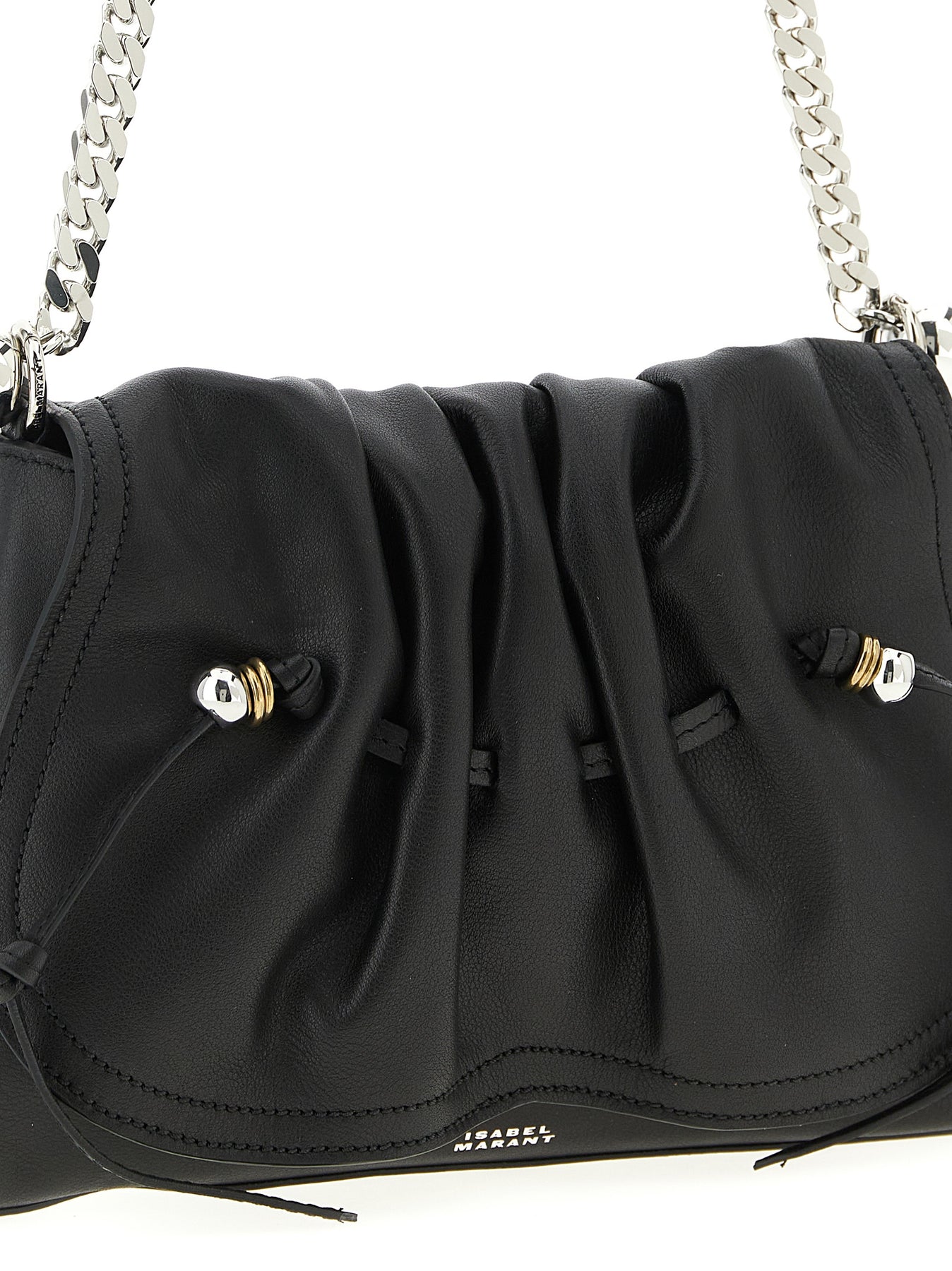 'Bolton' leather shoulder bag, magnetic flap closure with crinkled flap and lace with metal details, front embossed logo, chain shoulder strap with removable leather protection.