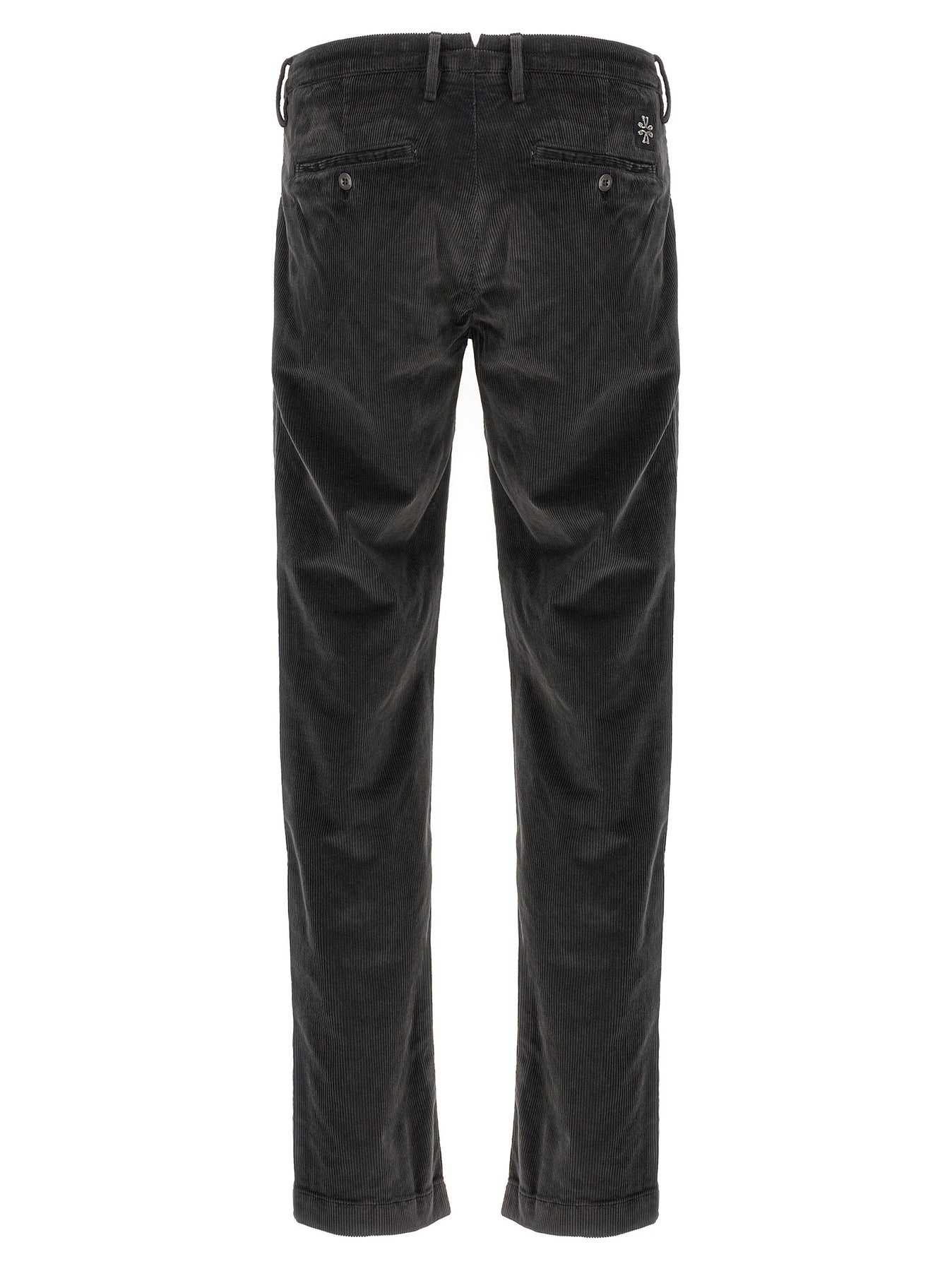 Corduroy pants with medium waist with straight leg, pockets, zip and button closure.