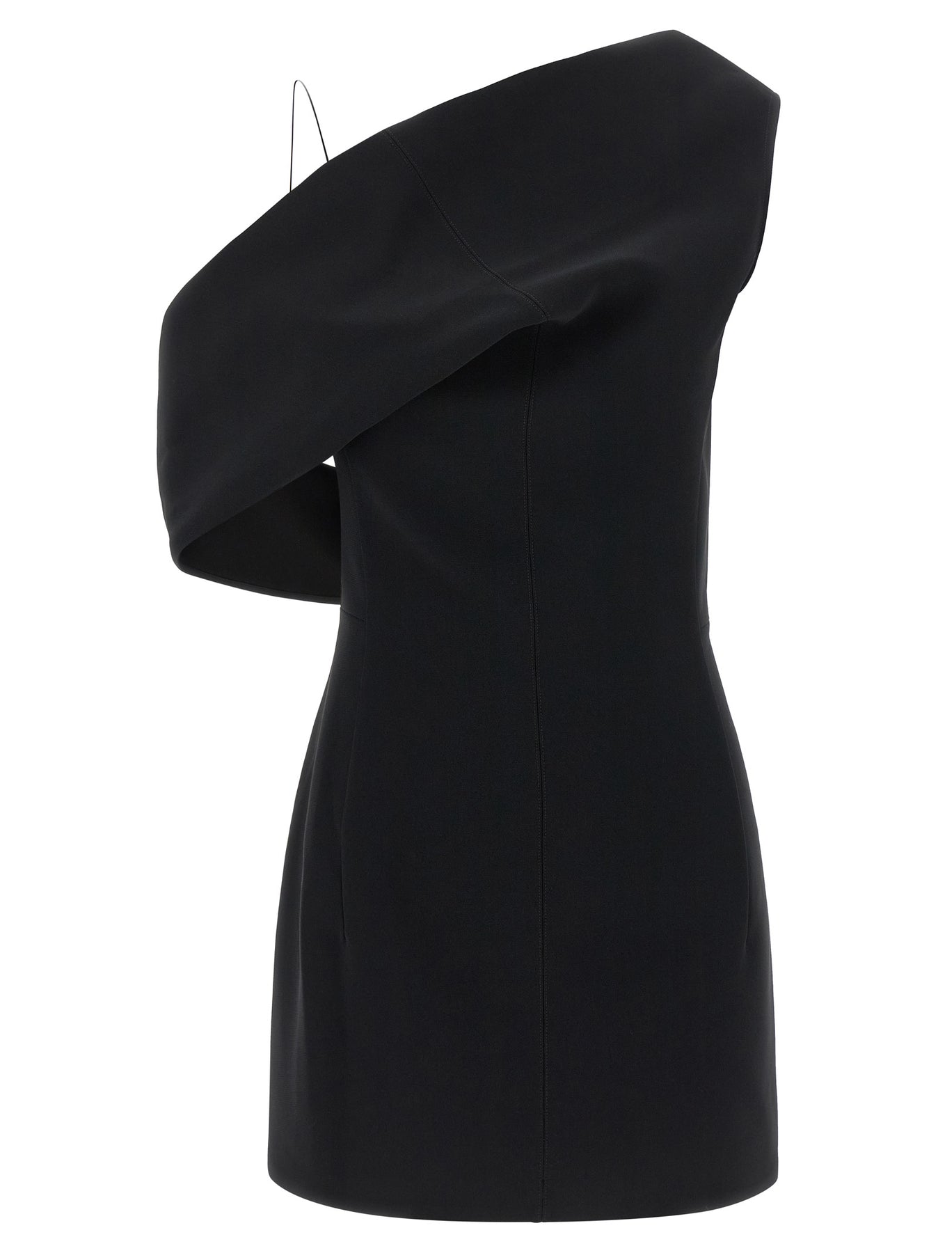 'La robe Pesce Courte' viscose minidress with draped neckline, side closure with concealed zip, asymmetrical sleeveless style.