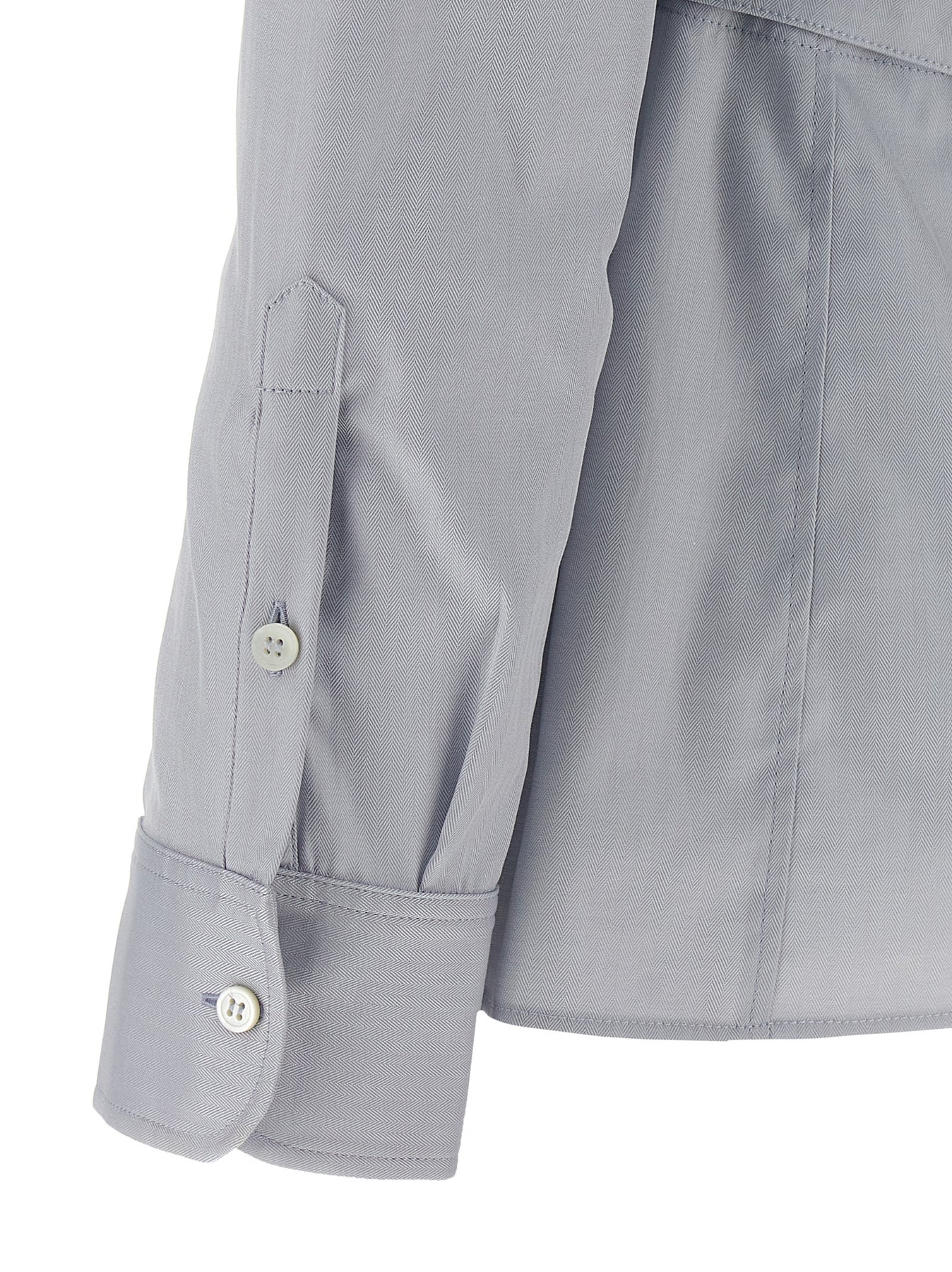'La Chemise De Costume' herringbone cotton shirt with button closure and front logo embroidery, long cuffed sleeves, large back cut-out detail with adjustable strap.